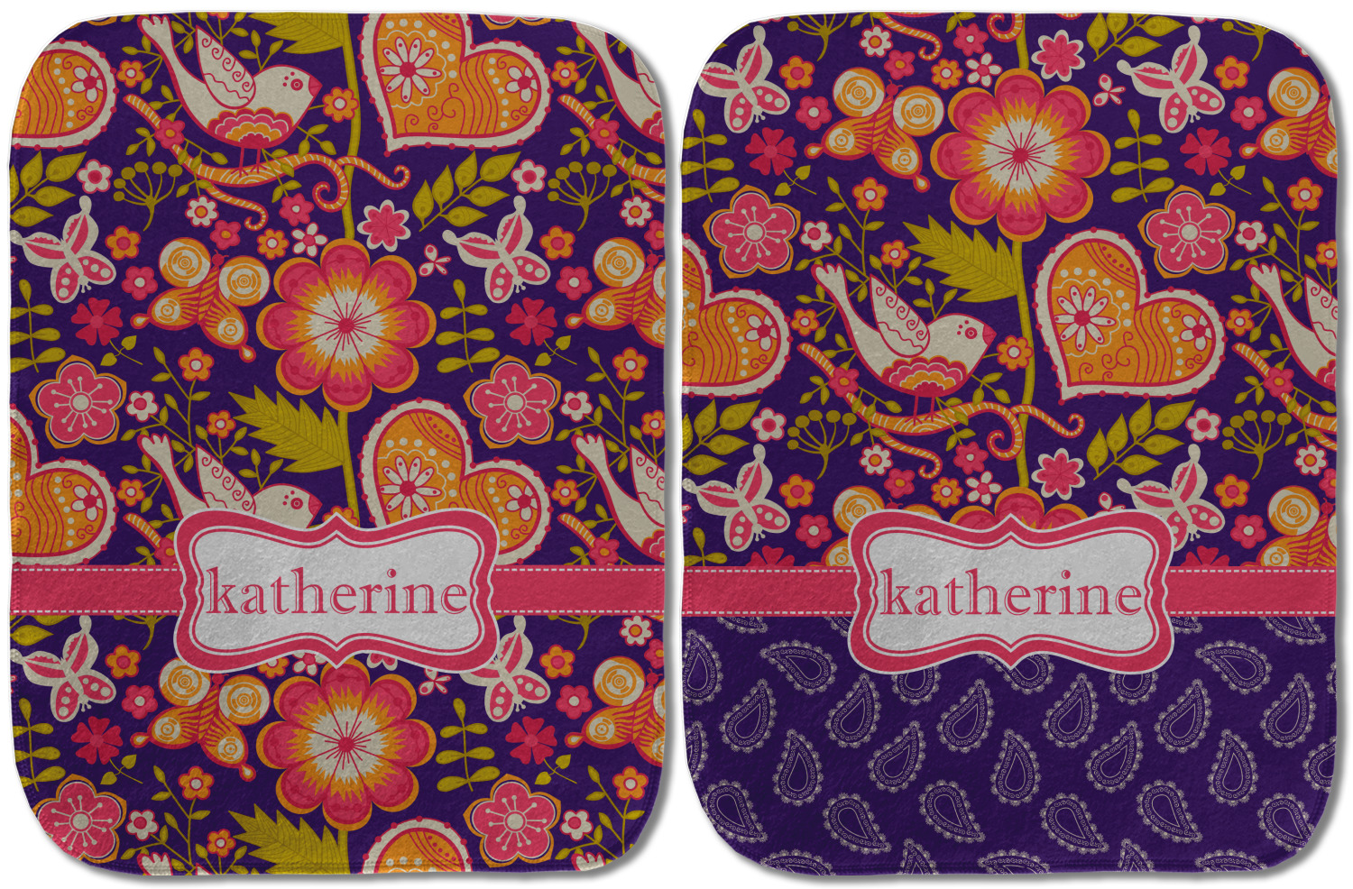 Choose your baby burp cloth from our two styles - Fleece (rectangular) or Microfiber Velour (peanut shape). The lightweight and absorbent design makes each burp cloth multipurpose; use them as a burp pad, a lap pad, a changing table, or a spare cloth to clean up any baby mess. Your customization is displayed across the front with baby-safe ink to ensure extra comfort with a white backing.