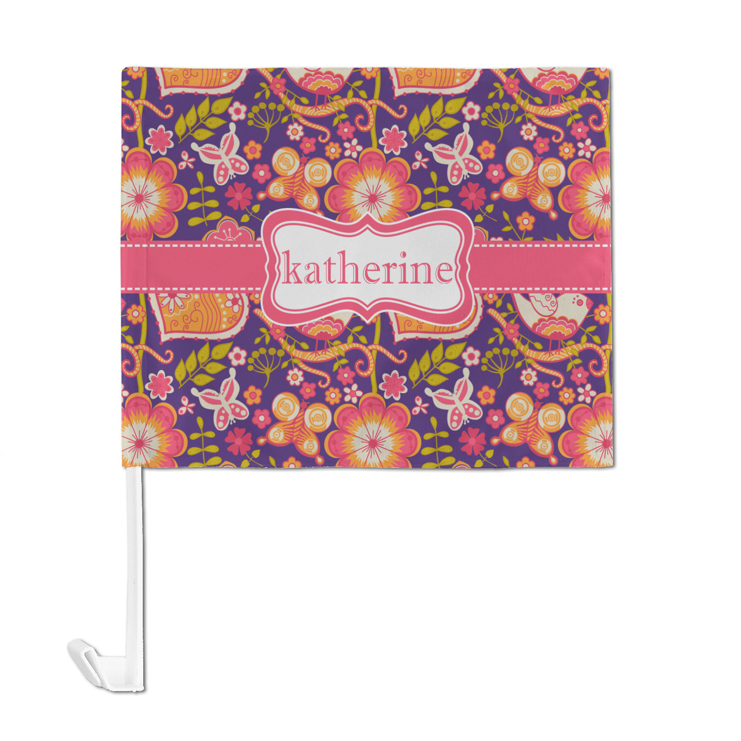 Our personalized flags are made from a durable, yet lightweight cloth that will proudly bear your logo or design of choice, while withstanding the outside elements. We have two size options - 8" x 11" and 11" x 15". Both come with a flag pole which includes a clip that secures the pole to the side window, whether it is rolled up or down. The flags are printed on both sides to display your design from all directions.