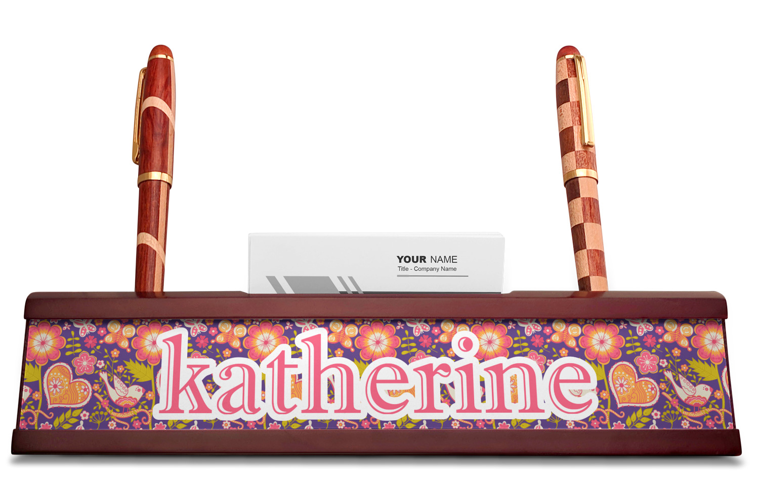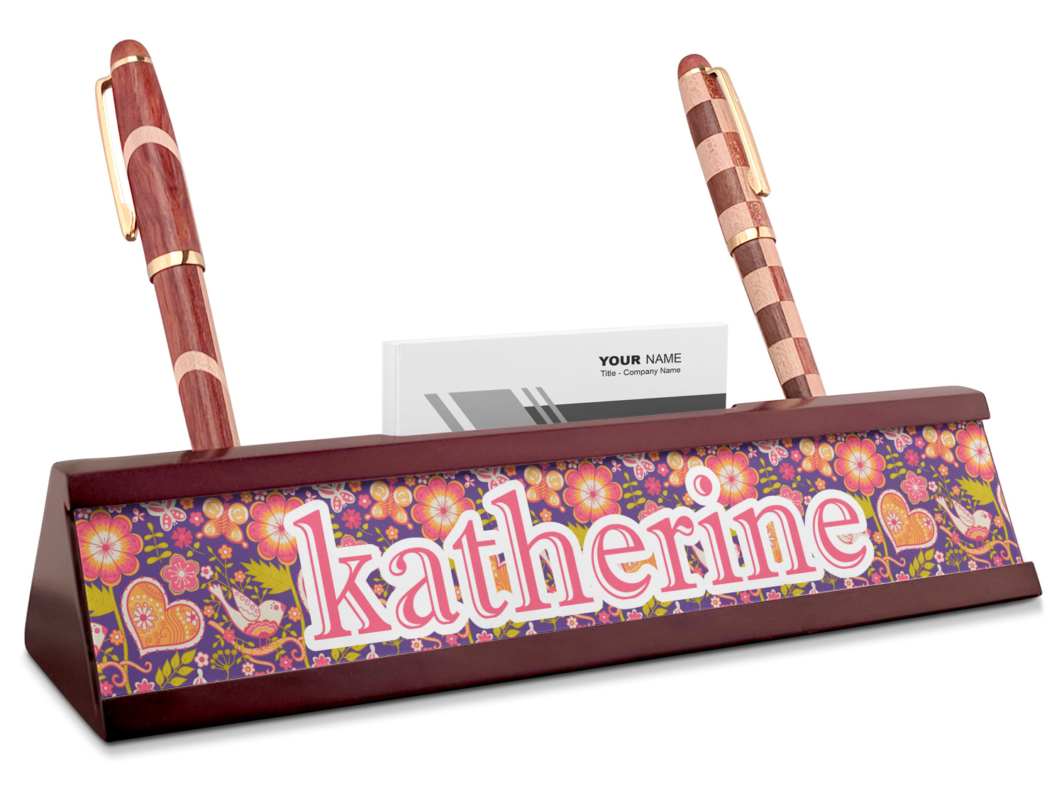 Shape + Symbol Designs for Red Mahogany Nameplates with Business Card Holder