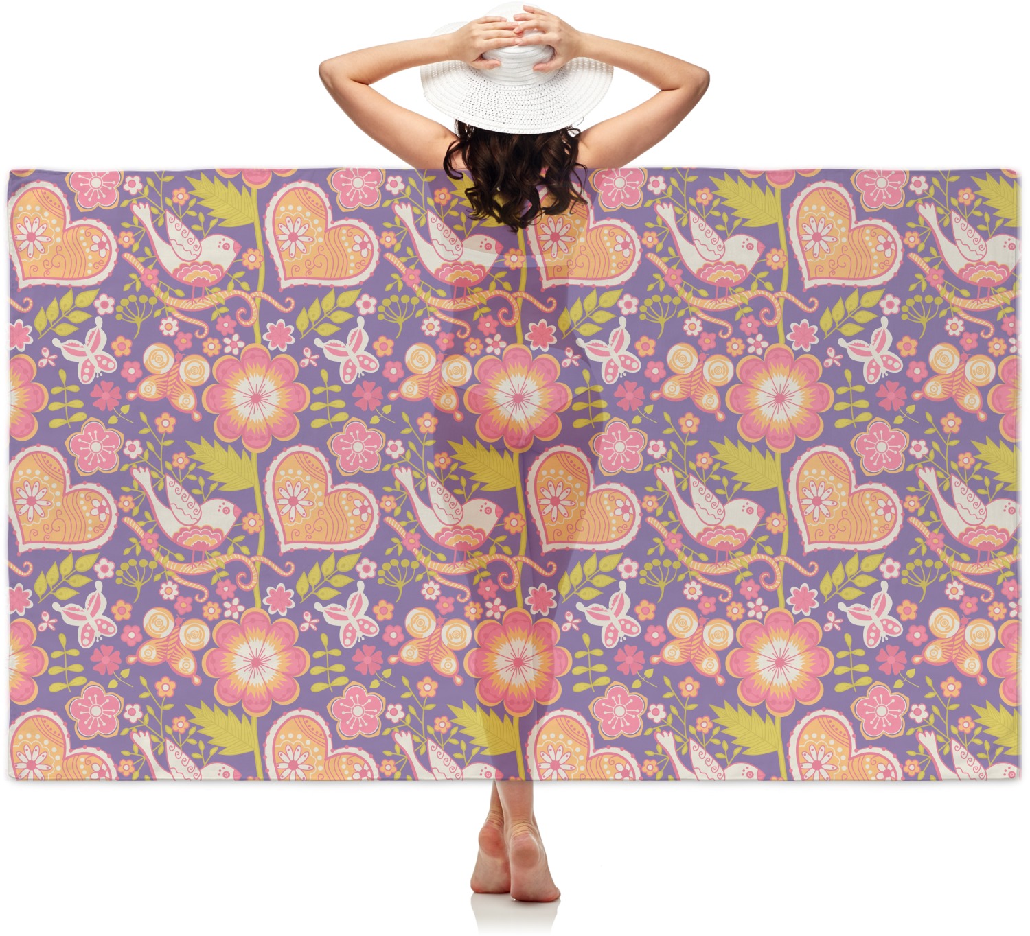 This sarong is 42" x 70" of personalized beauty. It is made of a soft polyester for comfort when against your skin. The material is sheer, so it serves well as a swimsuit cover-up or a shawl. There are so many uses for this wonderful product that you will be sure to find when it is in your hands.