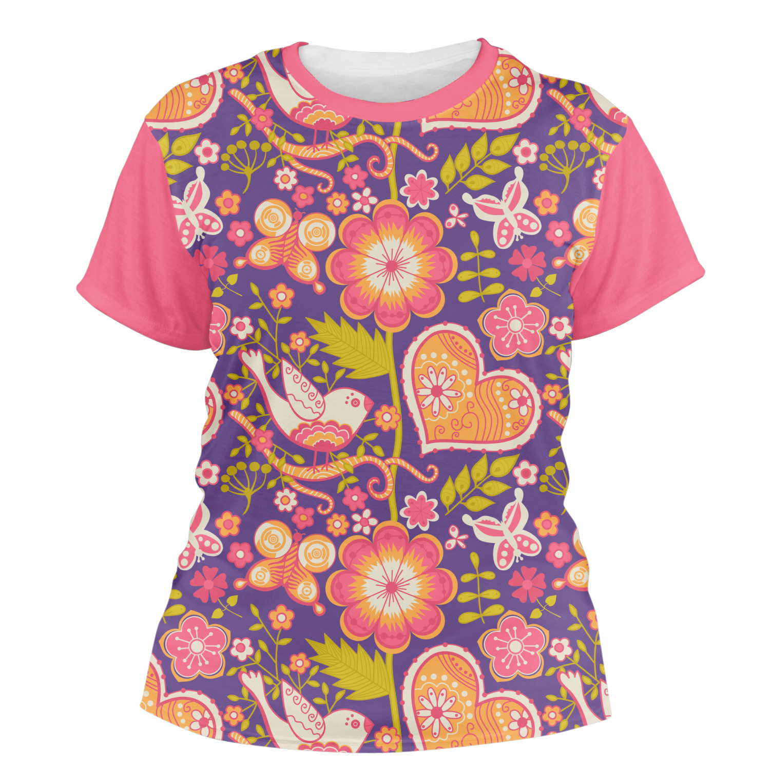 Our womens t-shirts are a lovely jersey knit polyester. They come in 6 different sizes ranging from X-Small to XX-Large. These shirts are your basic comfy crew neck t-shirts that look good on anyone. You are able to personalize the sleeves, front, AND back! Isn't that awesome?! Make everything one color or all different. The choice is yours.
