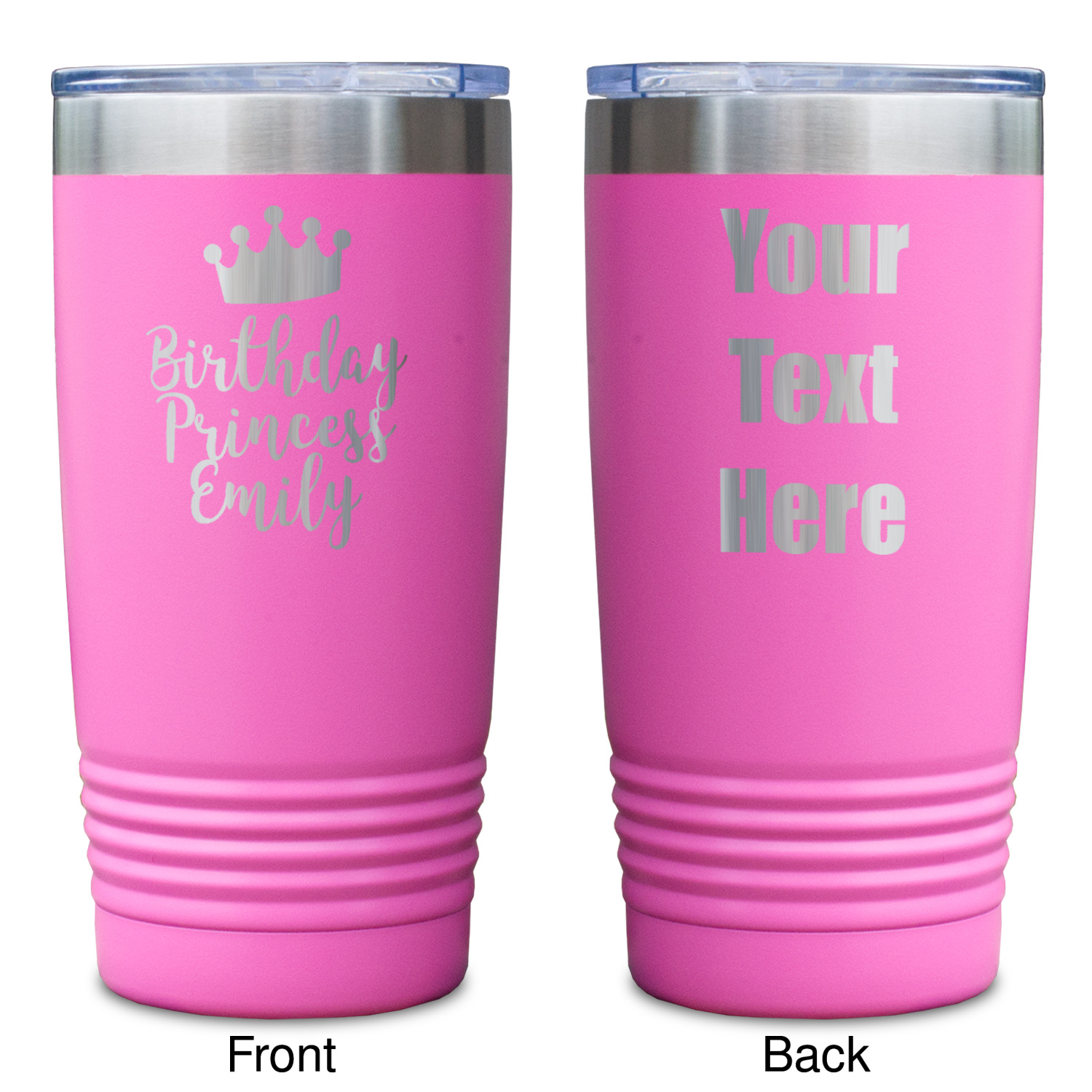 Available in 8 unique colors, these cups are crafted from 18/8 stainless steel and powder coated for their durable finish. With the 8 colors being Black, Pink, Red, Teal, White, Grey, Royal Blue, and Olive Green, you are sure to find a cup to fit your personality. You can chose to engrave on the front or the front and back of the cup. Use our design studio to design your own cup and we laser engrave it for you.