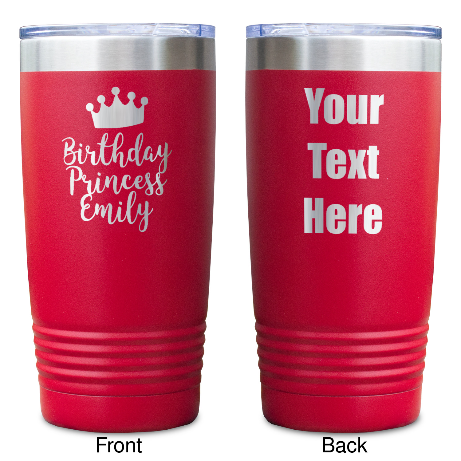 Available in 8 unique colors, these cups are crafted from 18/8 stainless steel and powder coated for their durable finish. With the 8 colors being Black, Pink, Red, Teal, White, Grey, Royal Blue, and Olive Green, you are sure to find a cup to fit your personality. You can chose to engrave on the front or the front and back of the cup. Use our design studio to design your own cup and we laser engrave it for you.