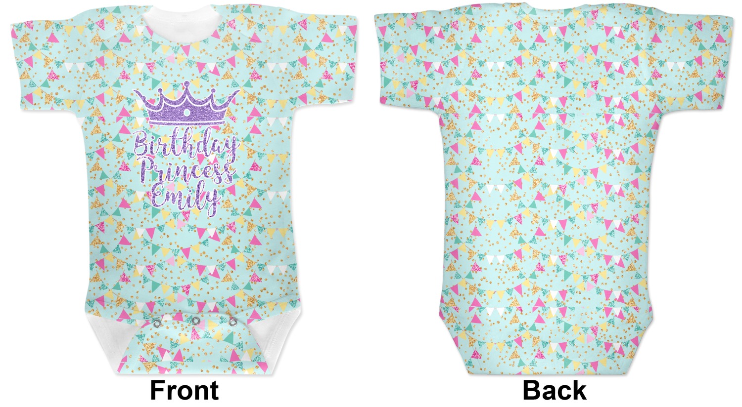 These cute baby bodysuits are made of stretchy, soft-to-the-touch polyester, making them very comfortable for your baby. These baby bodysuits also have snaps on the bottom to give easy access during changing times. Your personalization covers the entirety of this custom baby bodysuit, but the interior is white in color. As these are unisex baby bodysuits, they will work perfectly as baby girl bodysuits and baby boy bodysuits!
