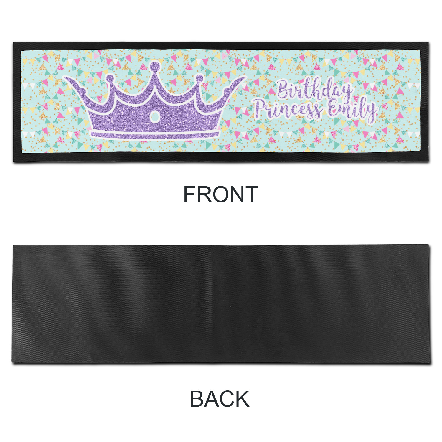 This design is bursting with fun! The background is a cool mint with brightly colored banners and confetti. The main graphic is a quote that says "Birthday Princess [Name Here]." This quote is filled with a fun glittery texture and can easily be changed to other fun patterns and colors.