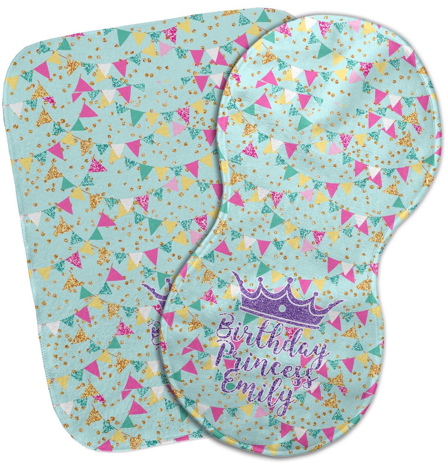 Choose your baby burp cloth from our two styles - Fleece (rectangular) or Microfiber Velour (peanut shape). The lightweight and absorbent design makes each burp cloth multipurpose; use them as a burp pad, a lap pad, a changing table, or a spare cloth to clean up any baby mess. Your customization is displayed across the front with baby-safe ink to ensure extra comfort with a white backing.