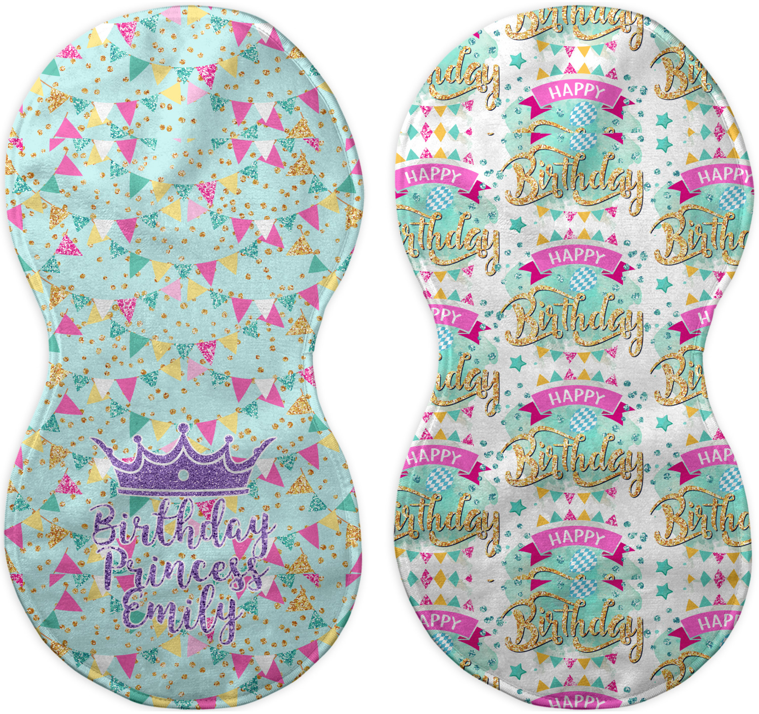 Choose your baby burp cloth from our two styles - Fleece (rectangular) or Microfiber Velour (peanut shape). The lightweight and absorbent design makes each burp cloth multipurpose; use them as a burp pad, a lap pad, a changing table, or a spare cloth to clean up any baby mess. Your customization is displayed across the front with baby-safe ink to ensure extra comfort with a white backing.