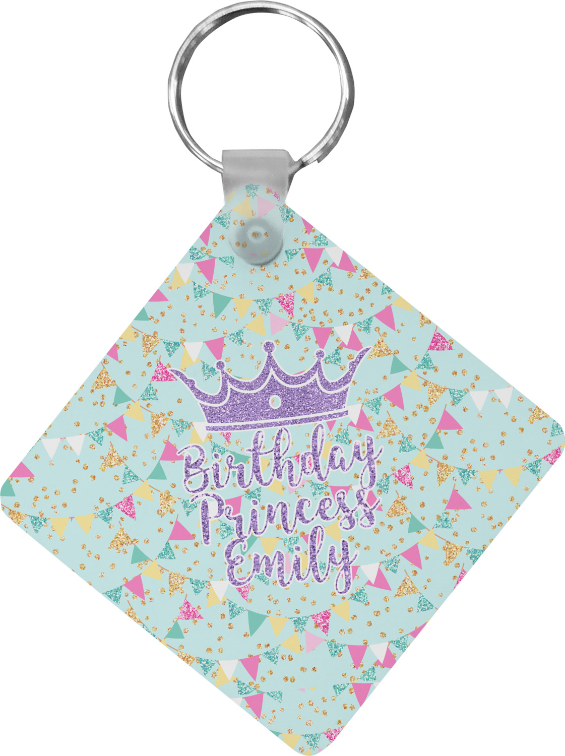 Our personalized keychains attach to the included metal, split key ring with a plastic, removable snap. Since a metal ring is included with your purchase, you have the liberty to keep your keys together on the ring, with or without your unique keychain. We offer this keychain in three different shapes: circle, heart, or diamond. We print your personalized design(s) on both sides of the key chain, and the surface has a glossy, reflective finish that only emphasizes your design. Each keychain is approximately 2.25 by 2.25 inches.
