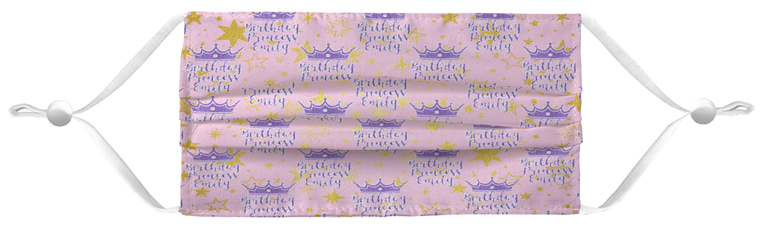These fun face masks are 7" wide and 3.5" high. They feature pleats, adjustable ear loops, and are made with two layers of fabric. The top layer where your design is printed is a breathable polyester sheeting, while the inside layer is a soft microfiber polyester