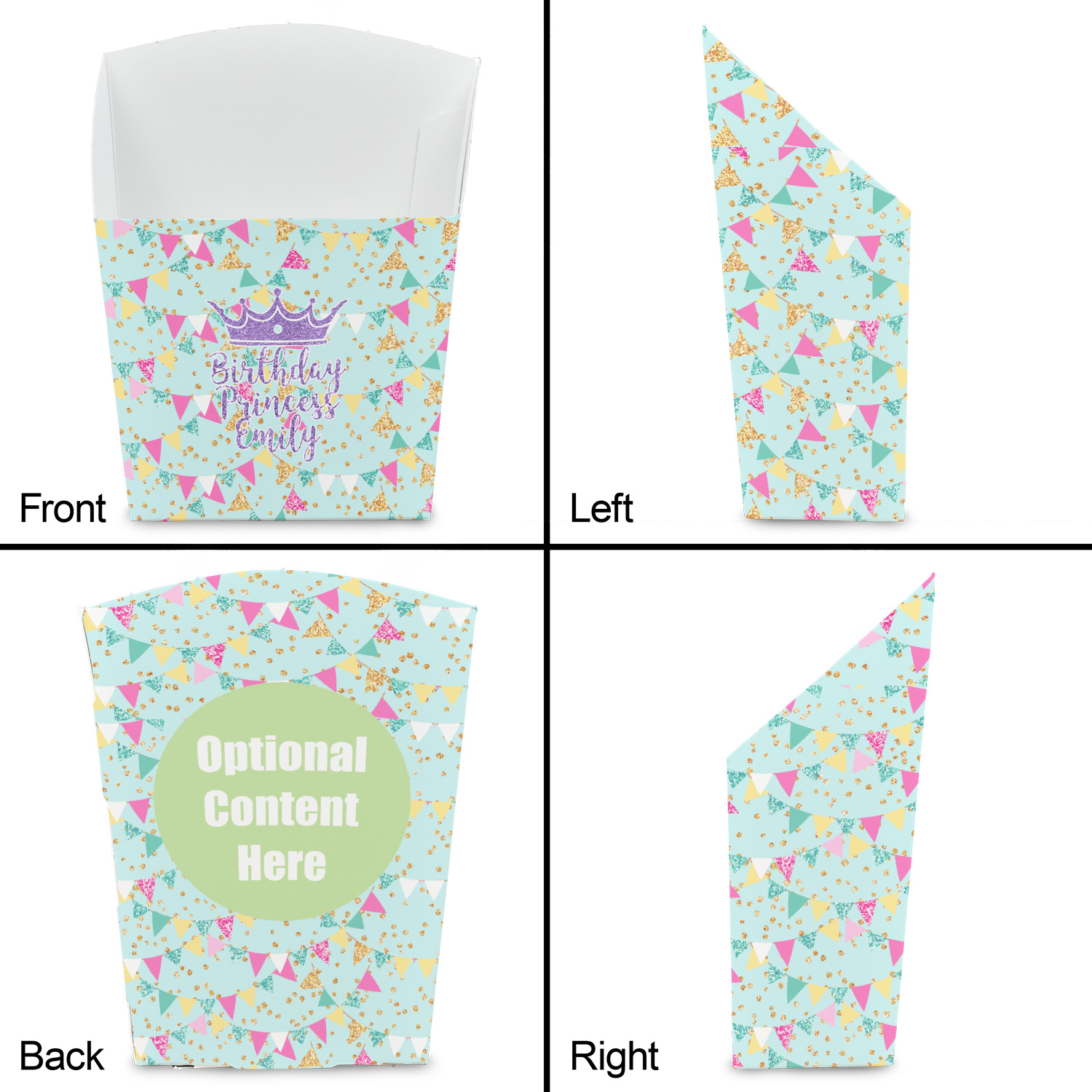 These favor boxes are printed in full color on quality cardstock - so coordinating the french fry favor boxes to match your event's themes or colors should be a breeze. You can upload your own design including artwork, logos or photos