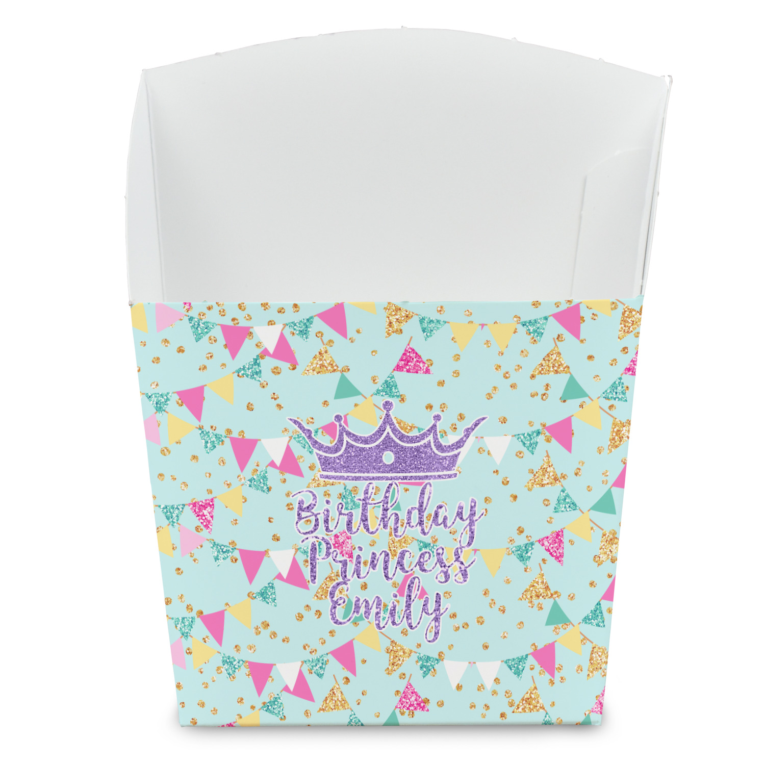 Since it is an open box, it works very well as a party snack cup (instead of plates) for different types of dry snacks and treats such as popcorn, cheezies, pretzels, chips, twizzlers, etc. This box can easily be carried with a drink all in one hand!