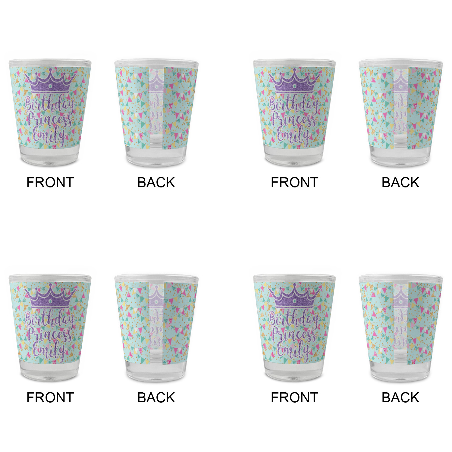 Made with frosted glass, these shot glasses are printed in full color with the design of your choice. They are a standard 1.5oz shot glass and are 2.4" tall. The print is wrapped around the shot glass in a full wrap and boldly displays your customization.