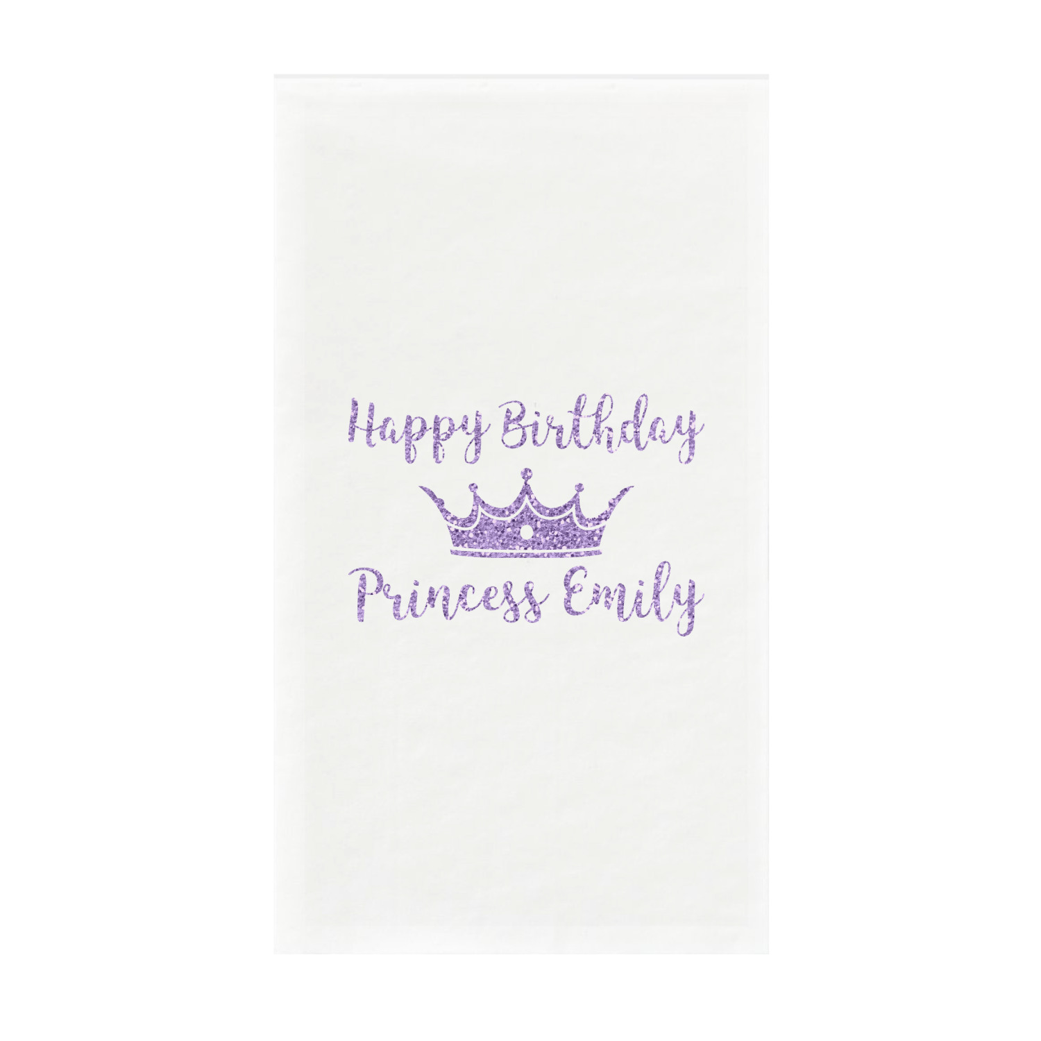 This design is bursting with fun! The background is a cool mint with brightly colored banners and confetti. The main graphic is a quote that says "Birthday Princess [Name Here]." This quote is filled with a fun glittery texture and can easily be changed to other fun patterns and colors.