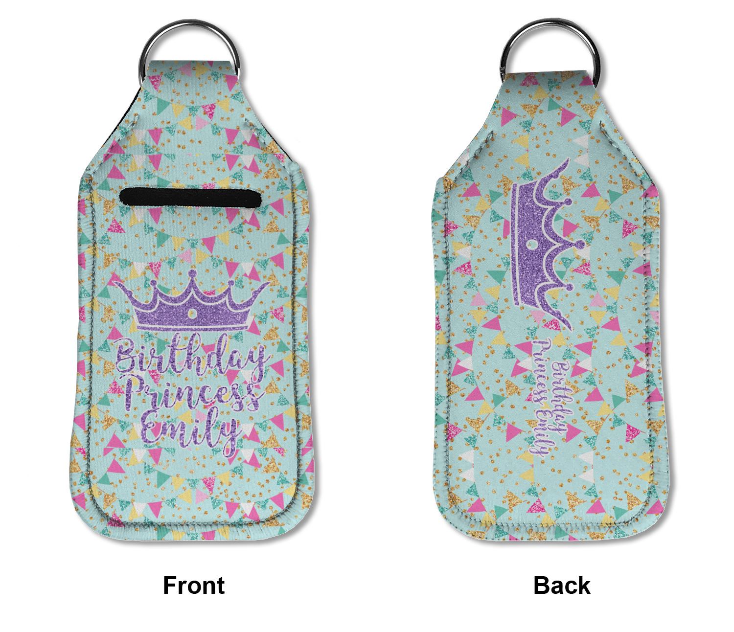 Each hand sanitizer holder comes with its own empty travel-sized, refillable hand sanitizer sure to fit snug in your customized sanitizer case! Our hand sanitizer cases are a durable, yet soft neoprene material sure to last any daily activities or travel agenda. Customize and personalize a hand sanitizer bottle holder with one of our two sizes - small (4.25" x 2.25") or large (5.5" x 2.5"). Each travel sanitizer holder comes with a keyring for attachment on bags, keys, or more!