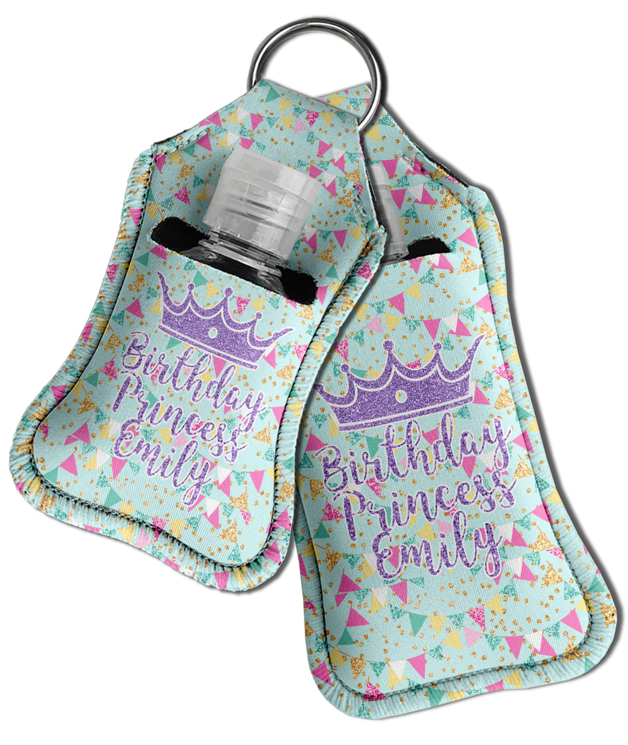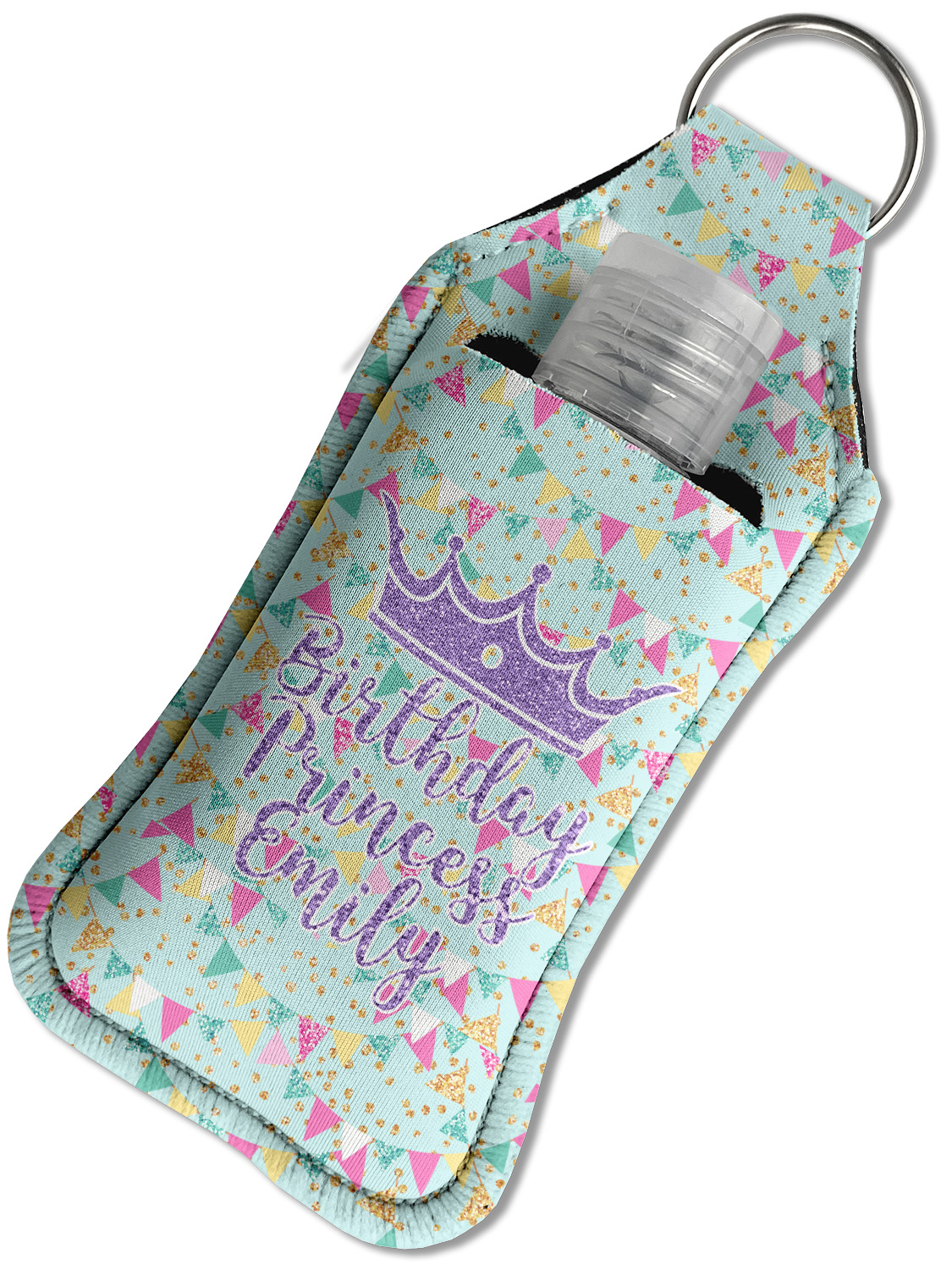 Each hand sanitizer holder comes with its own empty travel-sized, refillable hand sanitizer sure to fit snug in your customized sanitizer case! Our hand sanitizer cases are a durable, yet soft neoprene material sure to last any daily activities or travel agenda. Customize and personalize a hand sanitizer bottle holder with one of our two sizes - small (4.25" x 2.25") or large (5.5" x 2.5"). Each travel sanitizer holder comes with a keyring for attachment on bags, keys, or more!