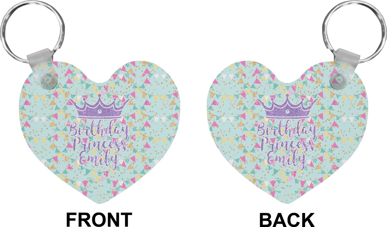 Our personalized keychains attach to the included metal, split key ring with a plastic, removable snap. Since a metal ring is included with your purchase, you have the liberty to keep your keys together on the ring, with or without your unique keychain. We offer this keychain in three different shapes: circle, heart, or diamond. We print your personalized design(s) on both sides of the key chain, and the surface has a glossy, reflective finish that only emphasizes your design. Each keychain is approximately 2.25 by 2.25 inches.