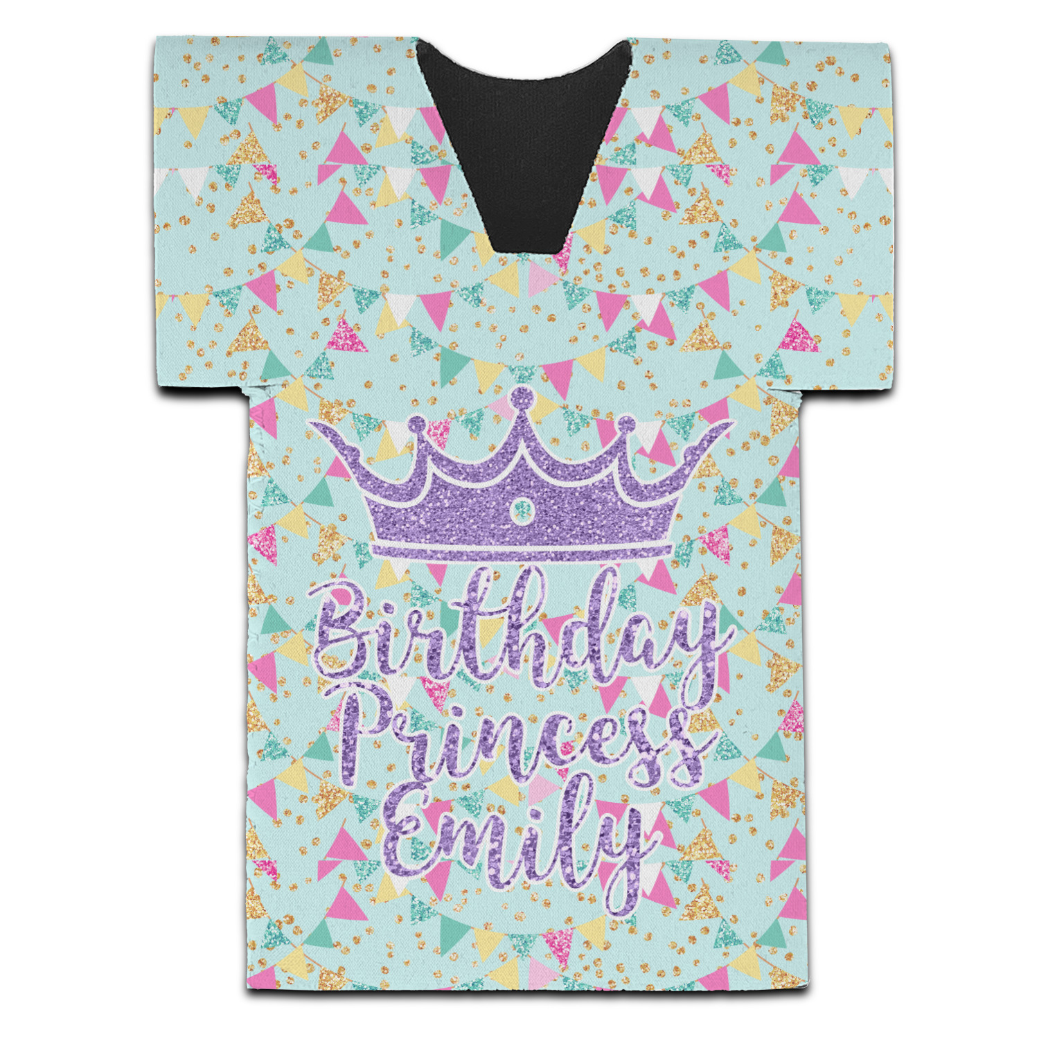 This design is bursting with fun! The background is a cool mint with brightly colored banners and confetti. The main graphic is a quote that says "Birthday Princess [Name Here]." This quote is filled with a fun glittery texture and can easily be changed to other fun patterns and colors.
