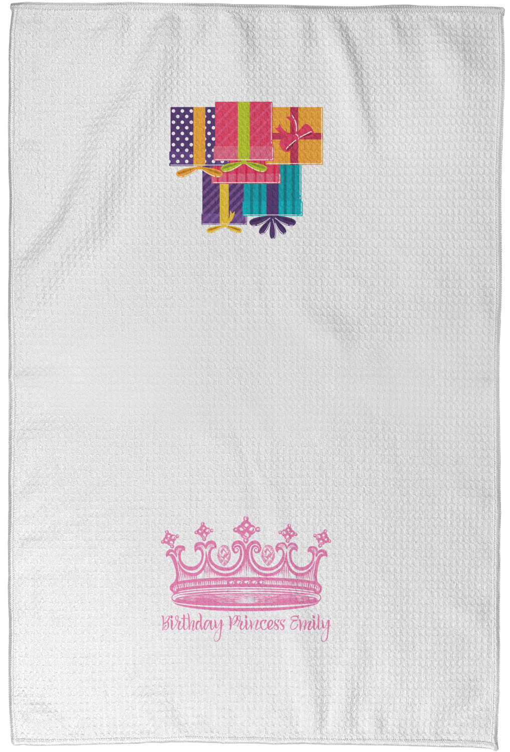 Each waffle weave kitchen towel is approximately 16 x 24 inches with your design printed on one side and the back is white.