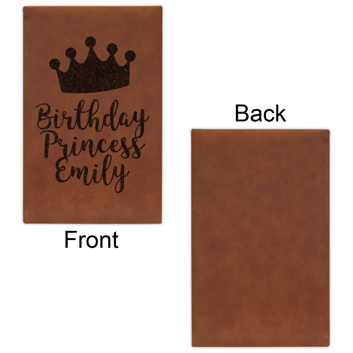 The faux leather covers are a rich cognac / rawhide color and can be customized with your design. From a simple name or monogram or a logo to a detailed mandala - the choice for customization & personalization is truly yours. Customize one of our designs or upload your own.