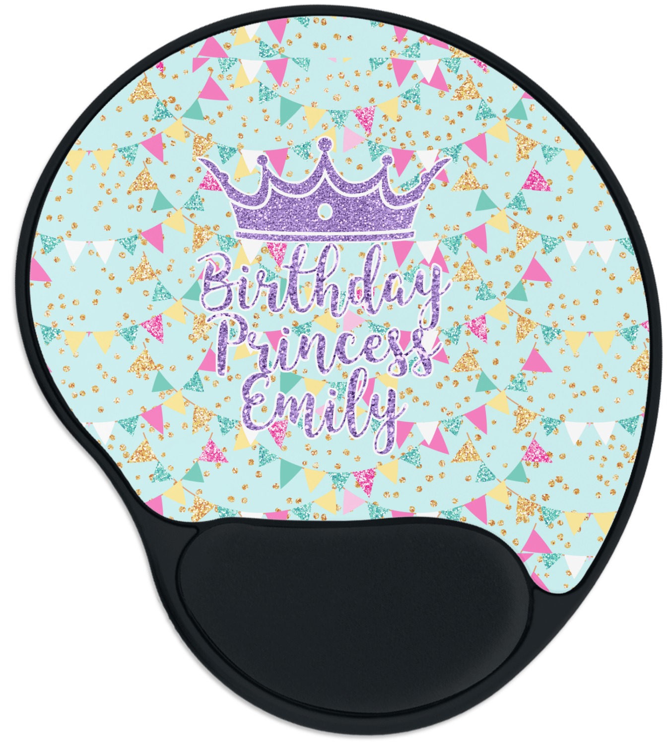 The top of these personalized mouse pads are made from a polyester, while the underside is plastic. The back of these mouse mats include rubber feet to prevent any slippage while in use. A padded wrist support, made from plush memory foam, occupies the bottom section of these computer mouse pads. Your customized design is printed onto the face of this mat, with the remaining sides and support piece colored in black. The mat itself is rounded and measures at 10.25" x 9.13".