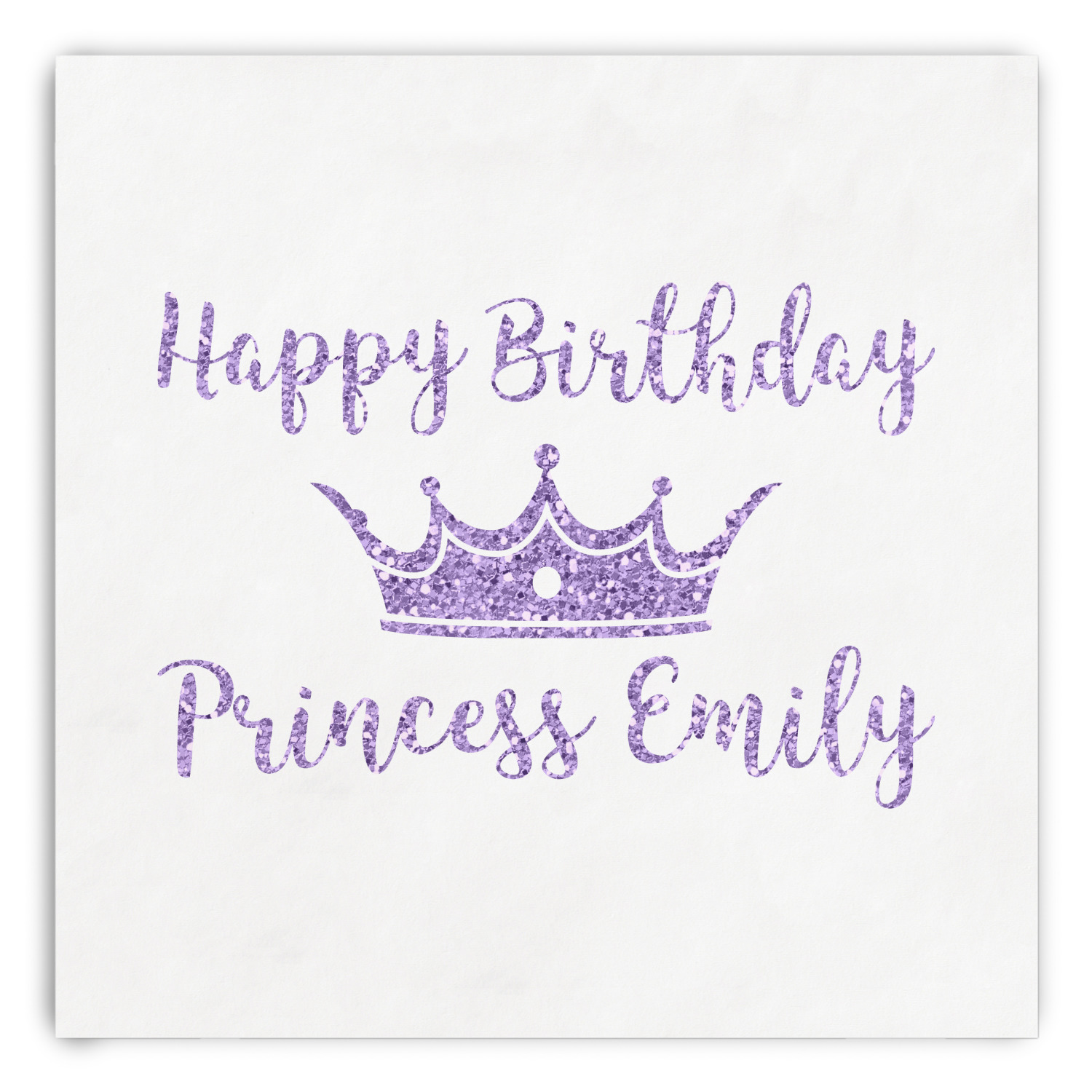 This design is bursting with fun! The background is a cool mint with brightly colored banners and confetti. The main graphic is a quote that says "Birthday Princess [Name Here]." This quote is filled with a fun glittery texture and can easily be changed to other fun patterns and colors.