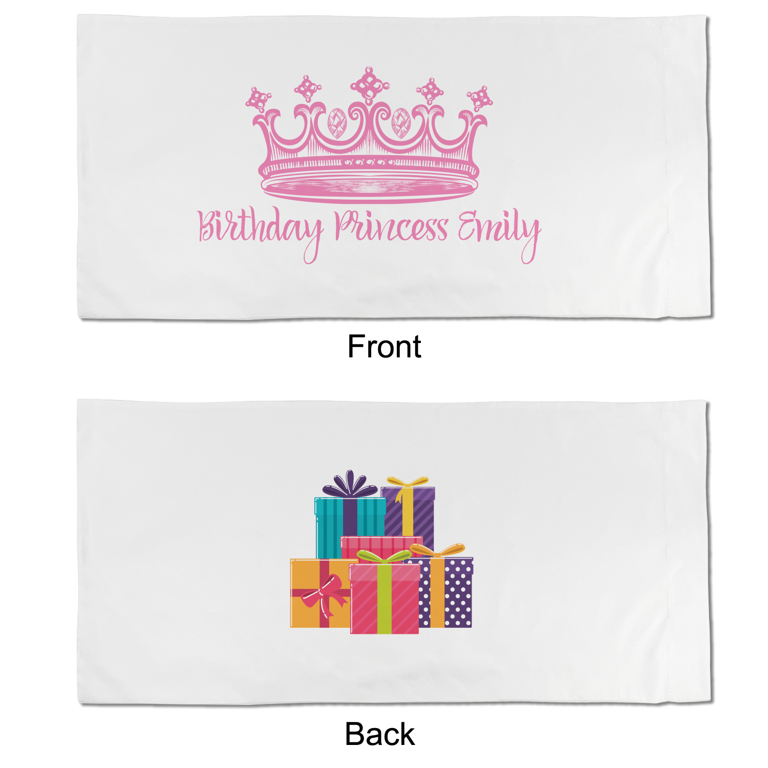 This design is bursting with fun! The background is a cool mint with brightly colored banners and confetti. The main graphic is a quote that says "Birthday Princess [Name Here]." This quote is filled with a fun glittery texture and can easily be changed to other fun patterns and colors.