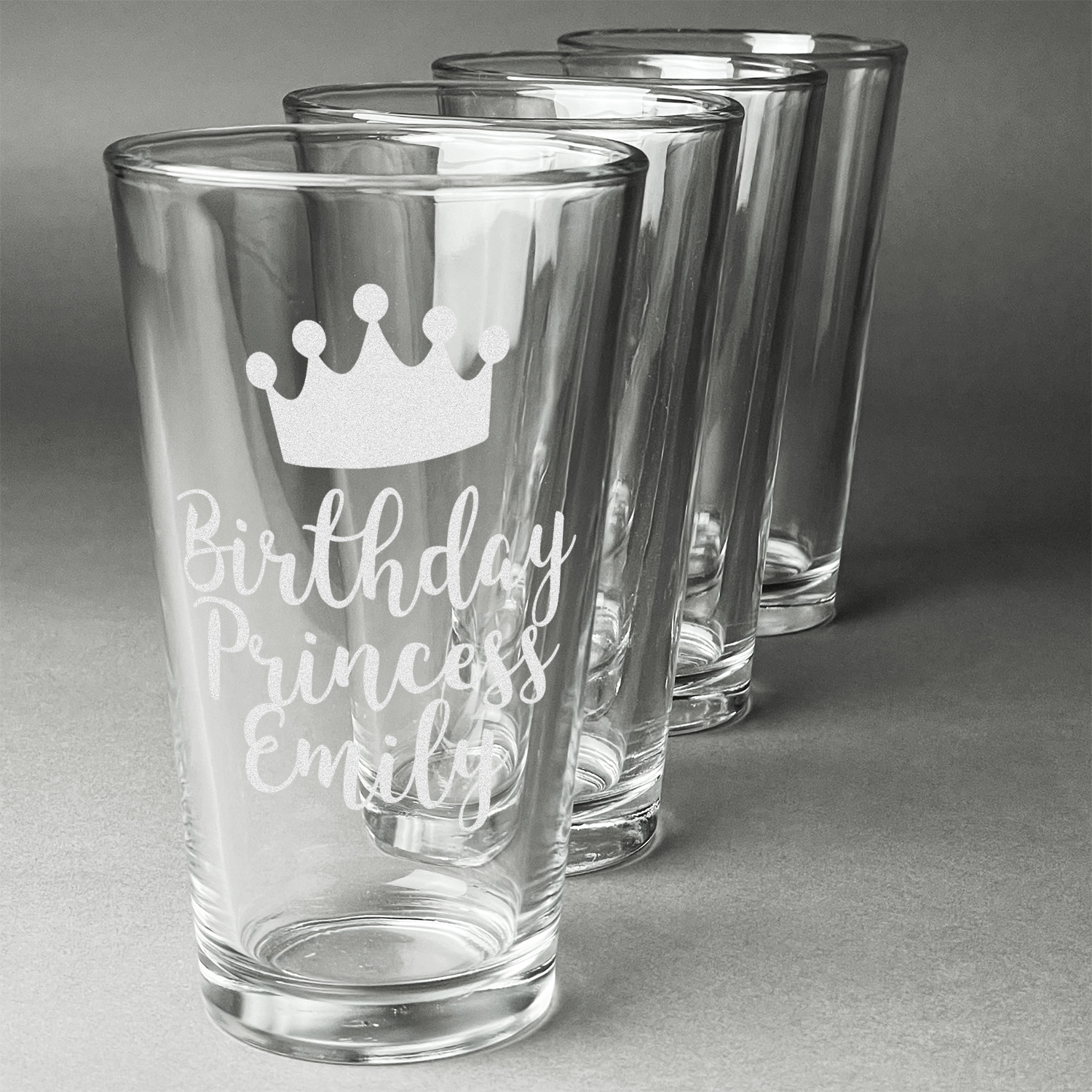 Available in a single glass or a set of 4 - each glass will be custom engraved with your design. Each glass holds 16 oz and measure 5.75"H x 3.5"W.