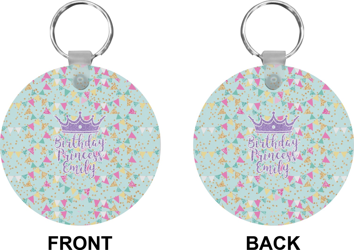 Our personalized keychains attach to the included metal, split key ring with a plastic, removable snap. Since a metal ring is included with your purchase, you have the liberty to keep your keys together on the ring, with or without your unique keychain. We offer this keychain in three different shapes: circle, heart, or diamond. We print your personalized design(s) on both sides of the key chain, and the surface has a glossy, reflective finish that only emphasizes your design. Each keychain is approximately 2.25 by 2.25 inches.