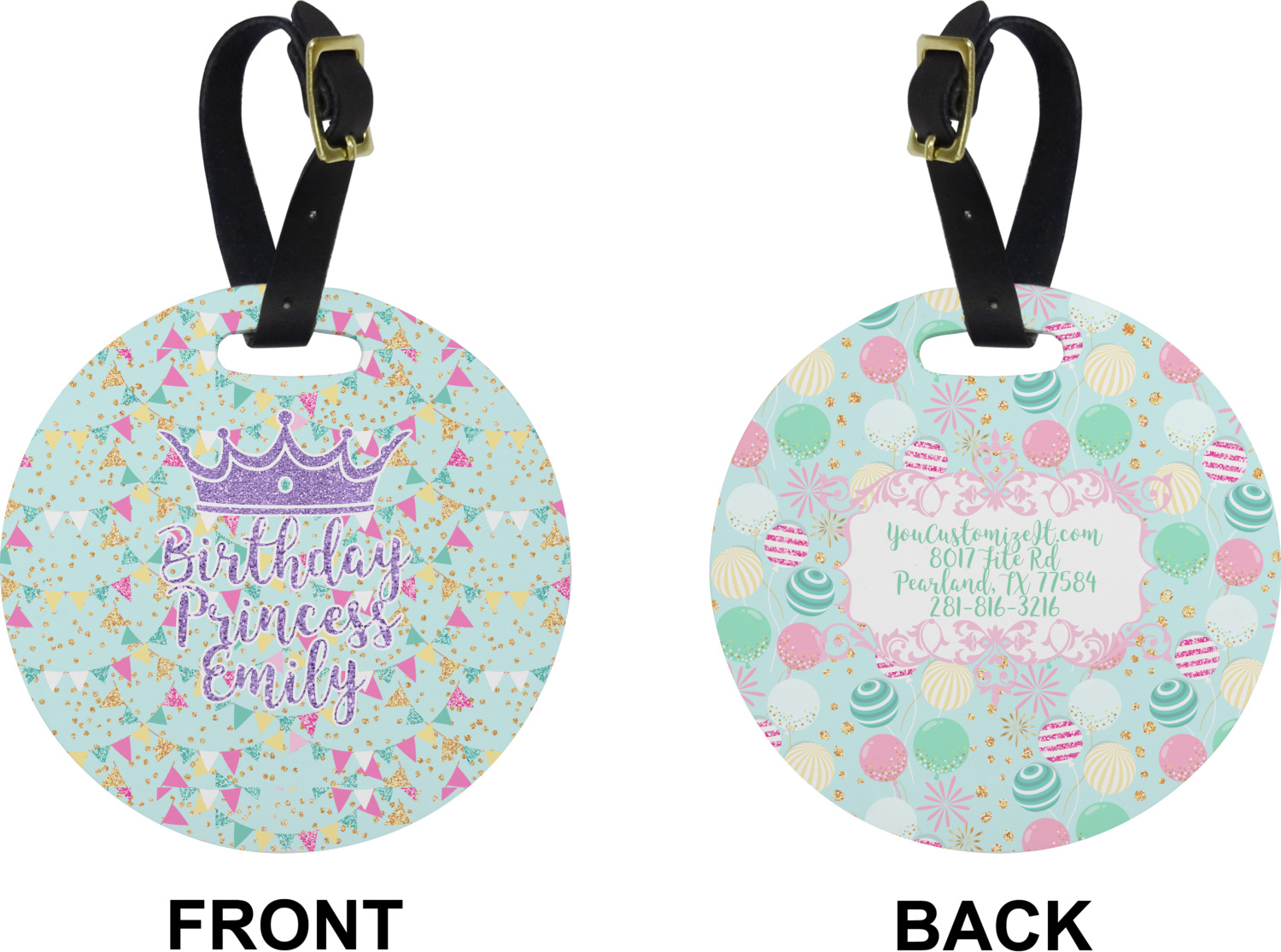 These cute luggage tags are made of a fiber-reinforced, UV-resistant plastic, making them waterproof and durable enough for both everyday use and the rugged adventures of any traveler! A leather strap with holes and a buckle is included with your purchase and can be used to attach your custom luggage tag to any suitcase, backpack, or duffel bag. You can design these travel tags as you wish; your customization will be displayed across the front, while the back will show as little or as much personal information as you want.
