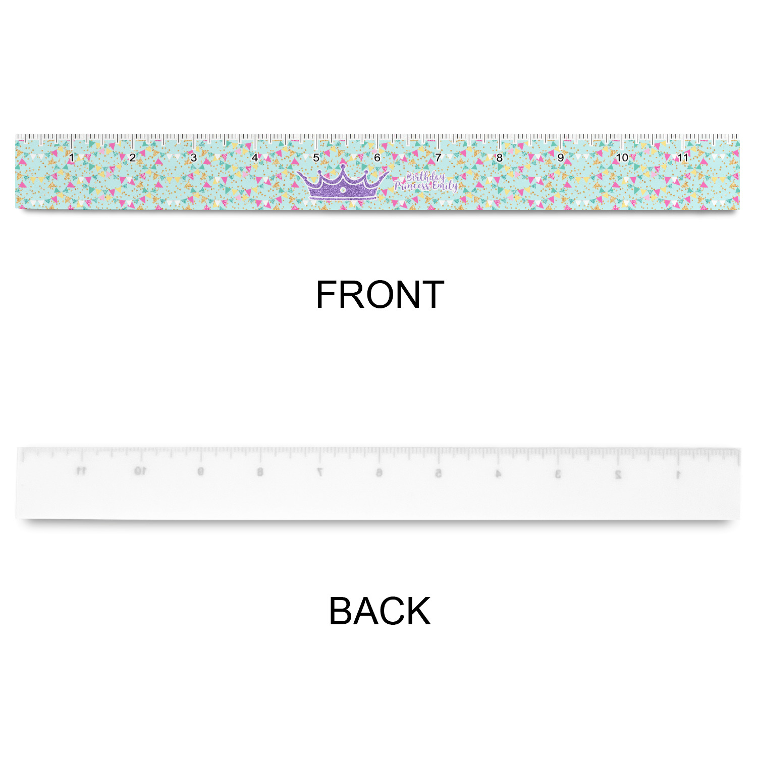 This design is bursting with fun! The background is a cool mint with brightly colored banners and confetti. The main graphic is a quote that says "Birthday Princess [Name Here]." This quote is filled with a fun glittery texture and can easily be changed to other fun patterns and colors.