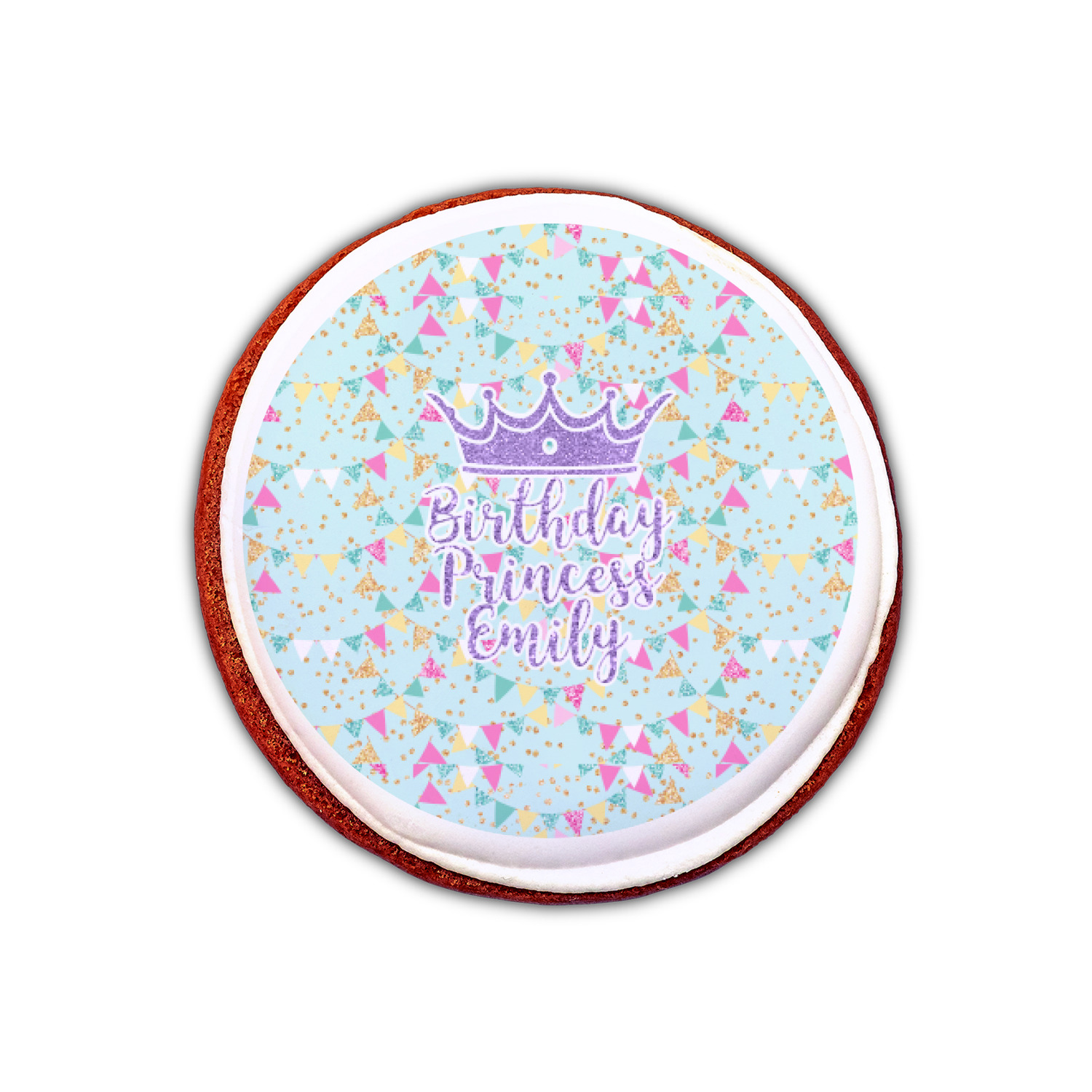 Your customized cookie toppers can be placed on top of any dessert with an icing top.The icing helps adhere the cookie topper to the dessert.