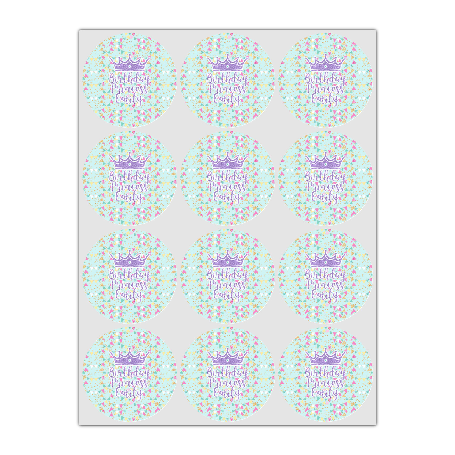 This design is bursting with fun! The background is a cool mint with brightly colored banners and confetti. The main graphic is a quote that says "Birthday Princess [Name Here]." This quote is filled with a fun glittery texture and can easily be changed to other fun patterns and colors.