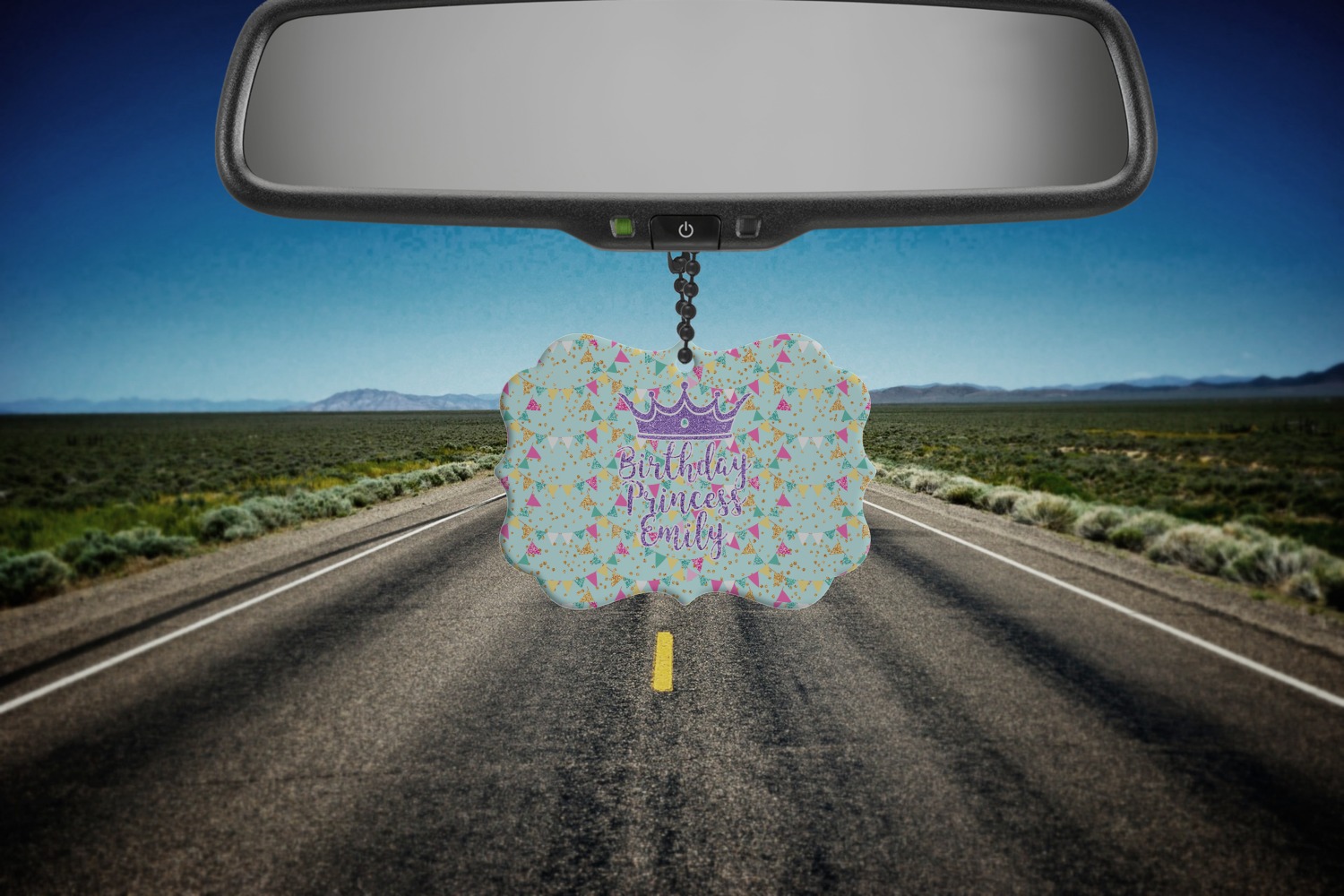 Crafted from a sturdy aluminum, these mirror ornaments proudly flaunt your personalized design(s) on both sides. A glossy finish is applied to your ornament, to accentuate the vibrancy of your design. A 10”, black, beaded chain accompanies your rear view mirror accessory, but can be adjusted to meet your desired length. We have this charm in two shapes; Benelux and Berlin. The Benelux measures at 4 by 2.5 inches, and is 0.045 inches thick. The Berlin measures at 4 by 2.75 inches and 0.045 inches deep.