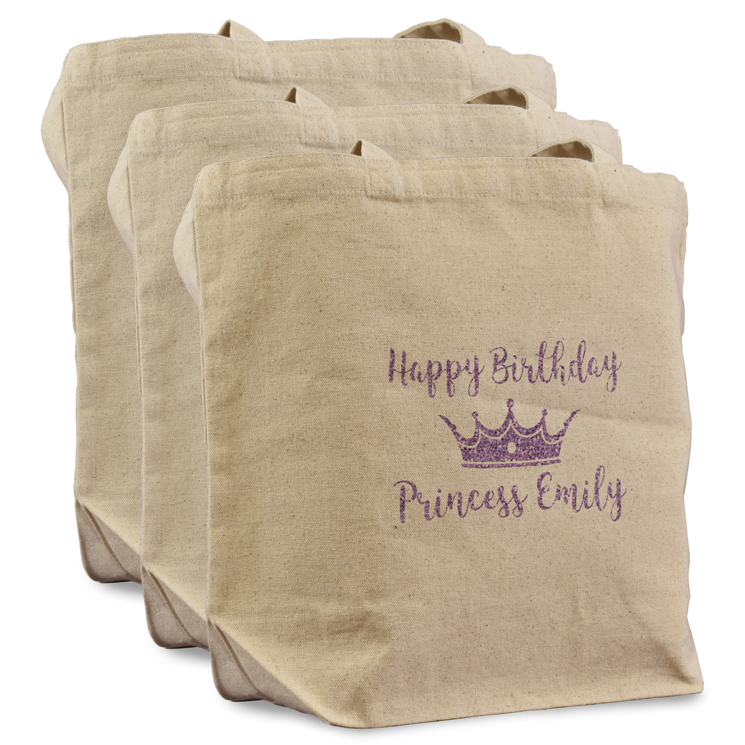 These cotton totes are washable and easy to care for, and they can be folded flat for storage. Your artwork, logo, or photo is printed in full color directly on the cotton tote in the front.