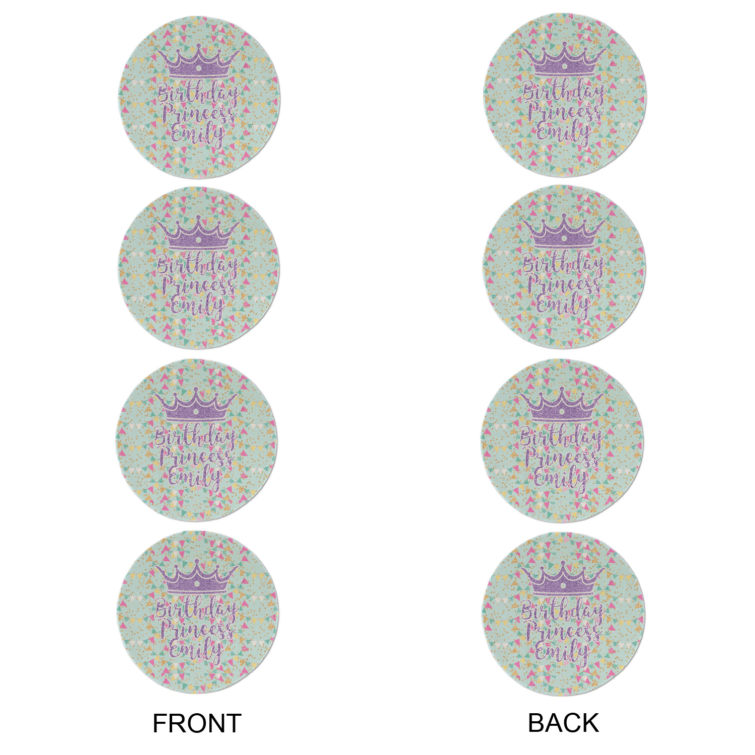 This design is bursting with fun! The background is a cool mint with brightly colored banners and confetti. The main graphic is a quote that says "Birthday Princess [Name Here]." This quote is filled with a fun glittery texture and can easily be changed to other fun patterns and colors.