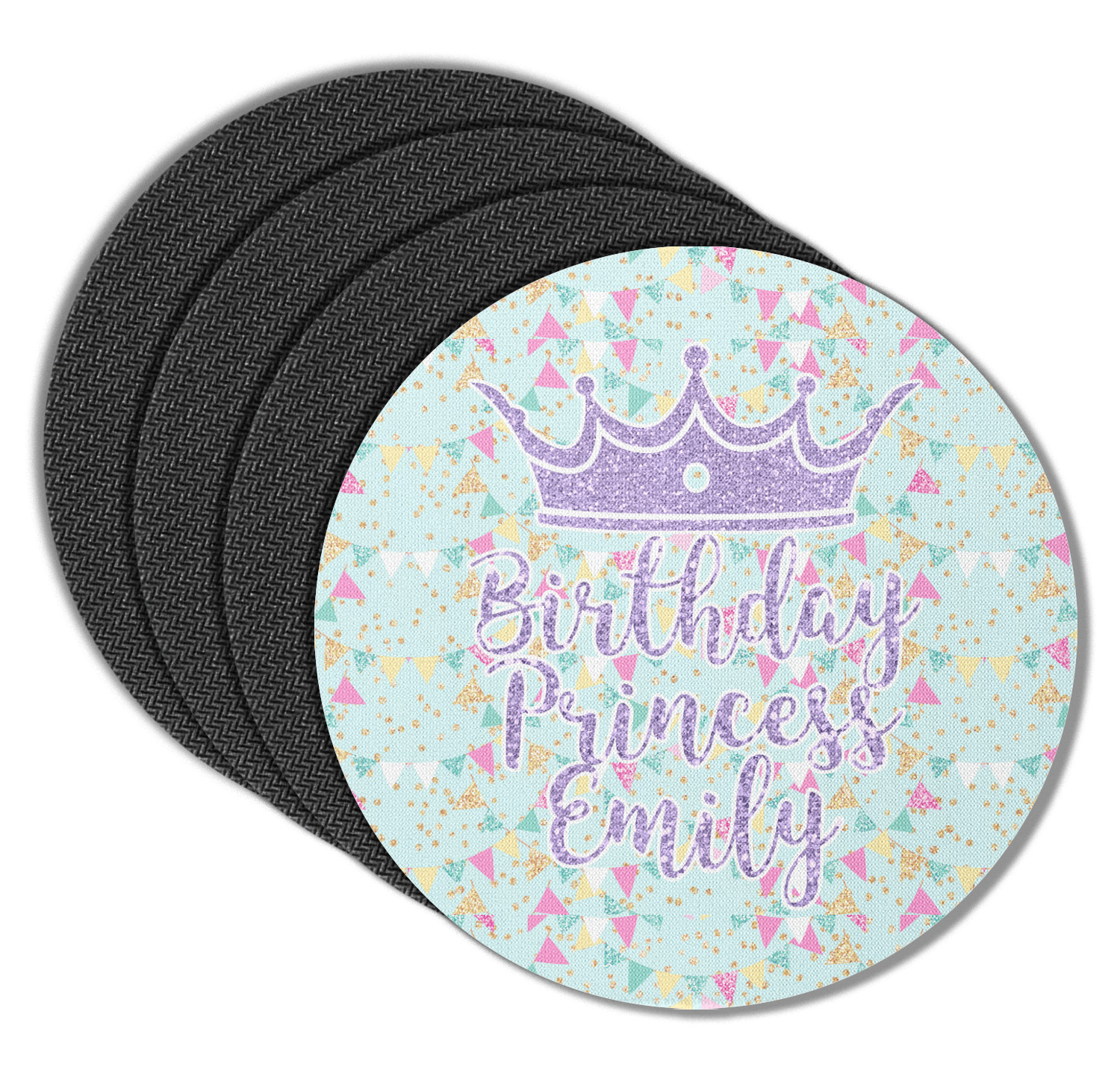 These drink coasters have a smooth, polyester top and a textured, rubber backing on its bottom. The non-slip rubber backing underneath works to keep any spills at bay. At 4 by 4 by 0.25 inches thick, these custom coasters are a suitable size for most drinkware. Your personalization is displayed atop the face of the cup coaster. We sell these rubber coasters in two different shapes: square and round. You can buy each shape as singulars or as a set of 4.