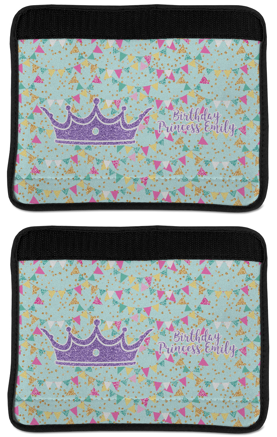 Made from neoprene, our seat belt strap covers wrap around the belt itself and have a Velcro tab for easy attachment and closure. The belt's edges are trimmed with a black polyester for a secure finish. Each cover is 9.5 by 7 inches when open and 9.5 by 2.5 inches when closed. We print your personalized design on the face of the seat belt pad.