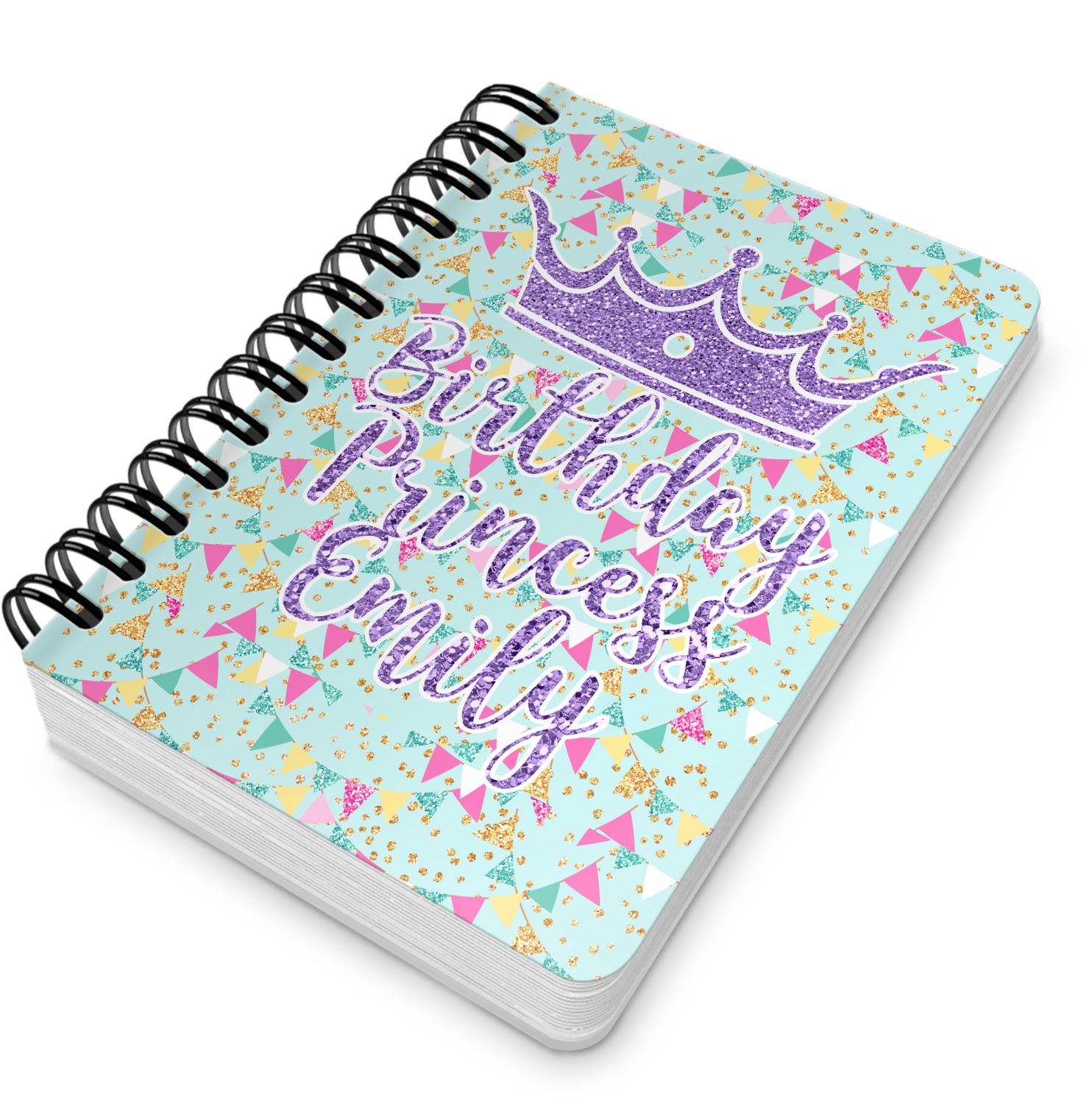 This spiral notebook includes 75 sheets of thick, ruled paper. The front and back of this custom notebook is made of a robust, laminate, plastic covering. We print your personalization on these two panels, underneath a glossy finish, which emphasizes the colors of your design. The two panels and the sheets of paper are held together by a sturdy, black coil. The paper within your bound notebook is perforated for easy, clean tearing.
