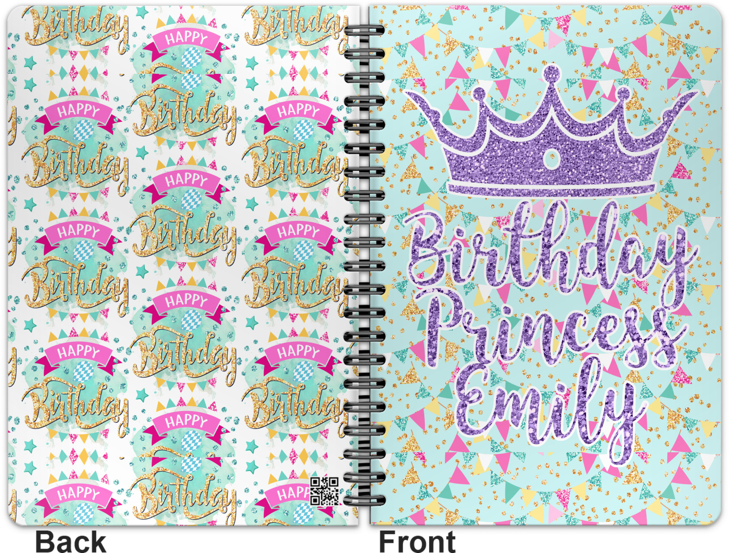 This spiral notebook includes 75 sheets of thick, ruled paper. The front and back of this custom notebook is made of a robust, laminate, plastic covering. We print your personalization on these two panels, underneath a glossy finish, which emphasizes the colors of your design. The two panels and the sheets of paper are held together by a sturdy, black coil. The paper within your bound notebook is perforated for easy, clean tearing.
