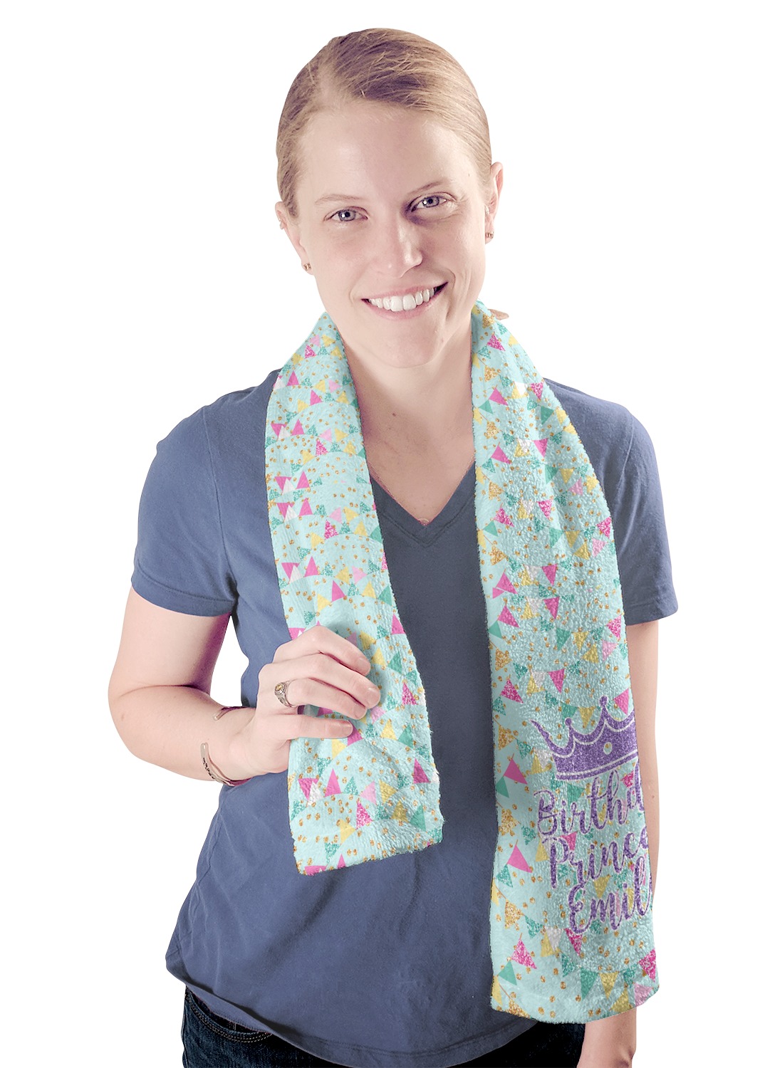 These towels are 44" x 12", which are the perfect size for hanging around your neck on the treadmill or wiping your brow after a hard workout. They are full-print towels with your very own design printed right on the front! They are perfect for soaking up moisture and are quite soft against your skin.
