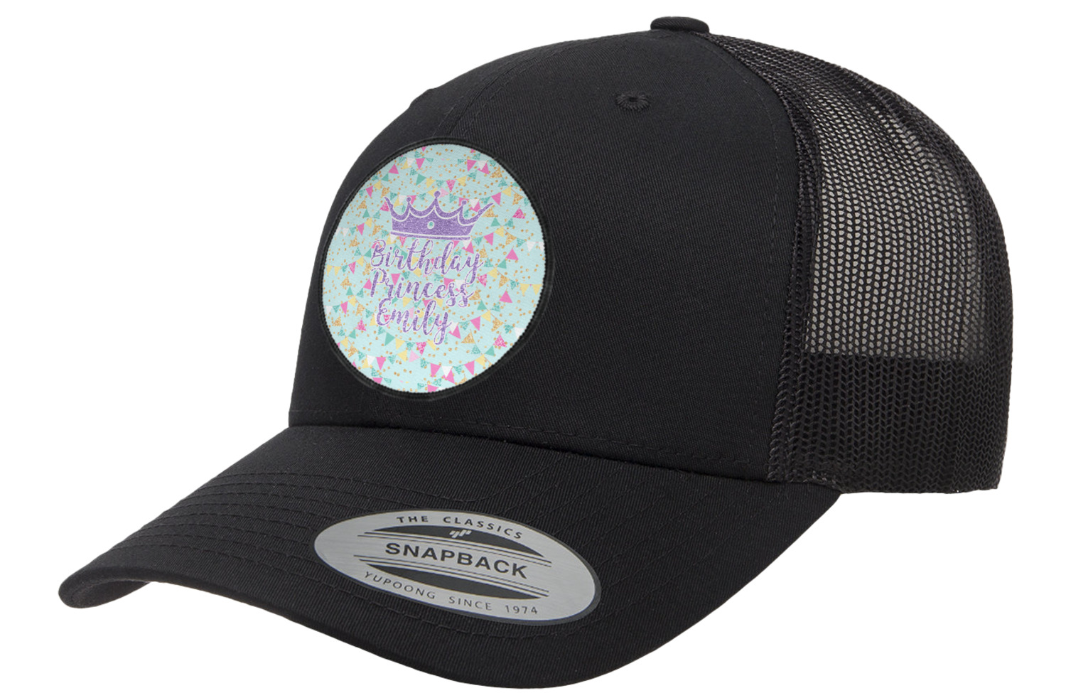 This design is bursting with fun! The background is a cool mint with brightly colored banners and confetti. The main graphic is a quote that says "Birthday Princess [Name Here]." This quote is filled with a fun glittery texture and can easily be changed to other fun patterns and colors.
