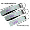 These key fob keychains are made from a polyester weave, right here in the USA. They feature a silver, metal clasp, attached to a round keyring. The piece gives the personalized wristlet a beautiful, finished look. Your customized design is printed on the outside of the keychain strap. We carry these wristlets in two sizes: small, which is 5 inches in width, and large, which is 5.5 inches in width.