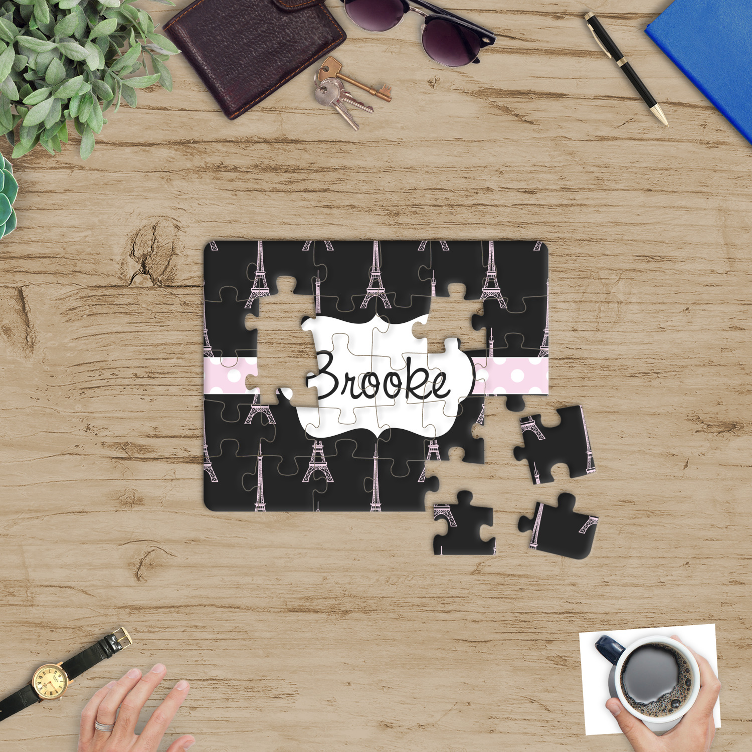 Depending on the look you are trying to achieve, you can add; a thematic pattern or background, with a photo in a frame and text or personalization to your puzzle. Basically if you can imagine it, you can design it!