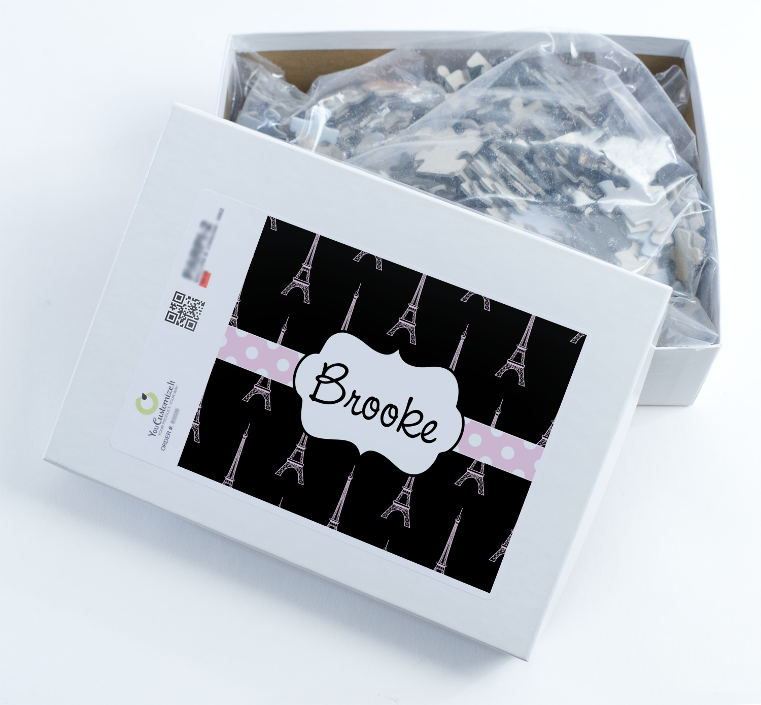 We print our puzzles on thick white chipboard in vibrant colors, then laminate the chipboard and die cut your puzzle. Your jigsaw puzzle is shipped to you in a box with the image of the puzzle on the box.