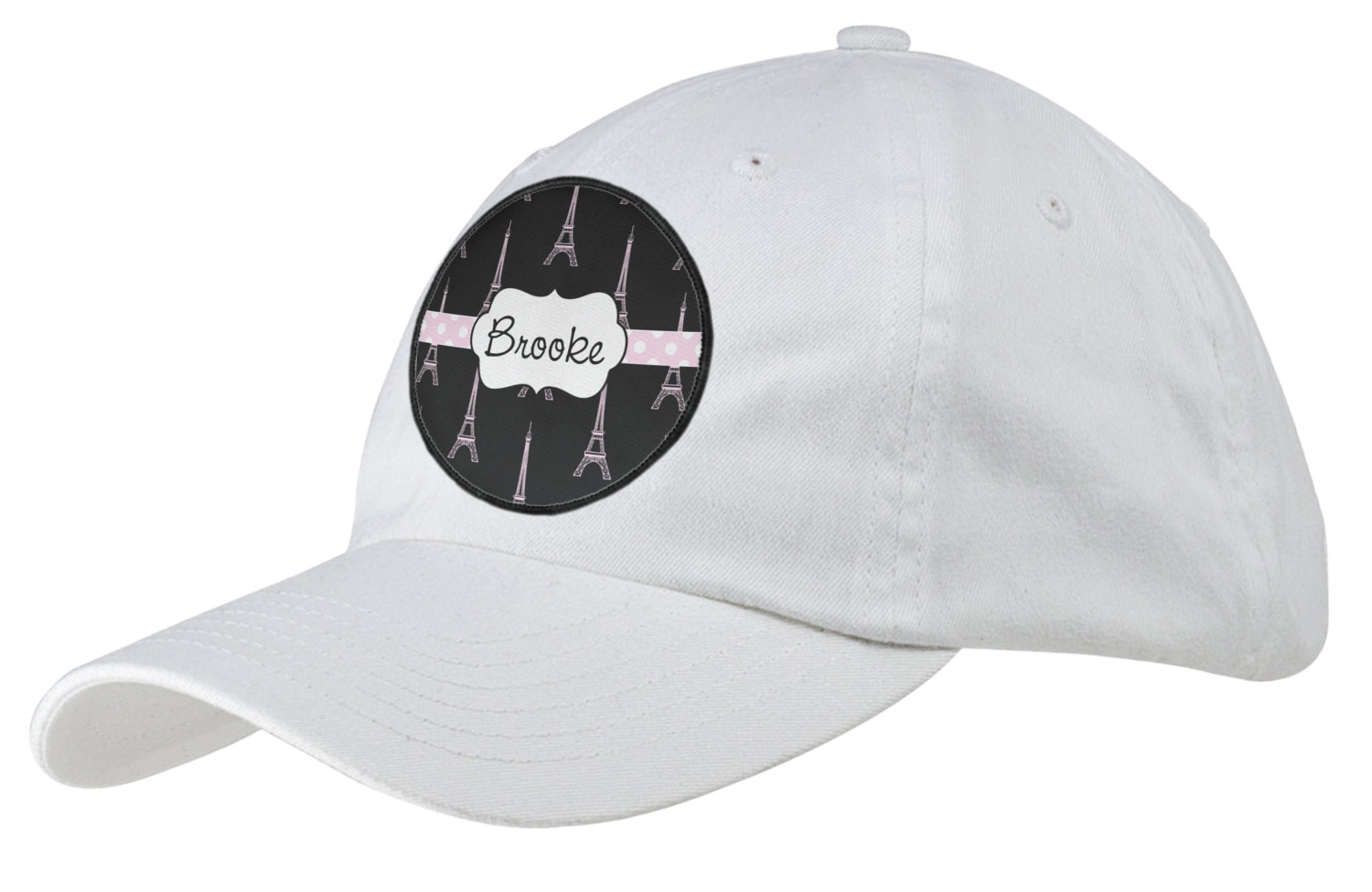 A gorgeous wide soft pink and white polka dot band adds a touch of French whimsy. The beautiful white label trimmed in coordinating pink highlights the personalization of your choice.