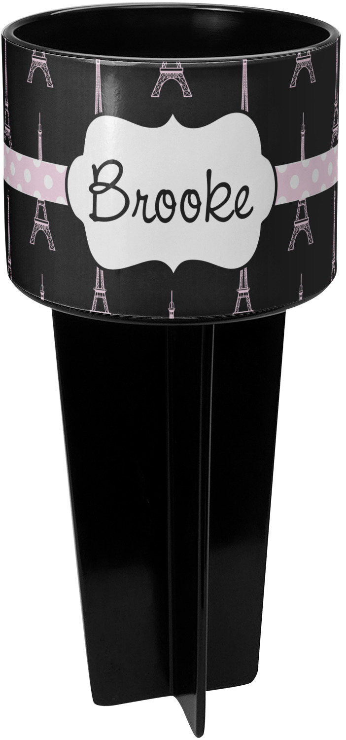 This cup holder has a large stake at its bottom that anchors it to the sand or ground below, while the cup holder rests above the stake. The entire drink holder is made of durable plastic and displays your customization around the cup holder portion. We sell these personalized beach spikers in two different colors: black and white.