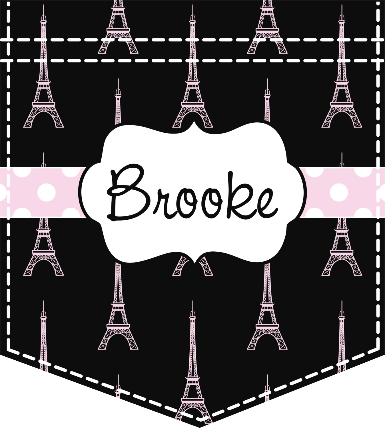 Our no sew faux pockets are easily customized by you. Our customization system allows you to change the personalization from a name to a monogram or to a name & initial or remove it completely. You can also change the colors, fonts, graphics, backgrounds etc. You can also upload your own picture / image or logo or we can custom create one for you or your event.