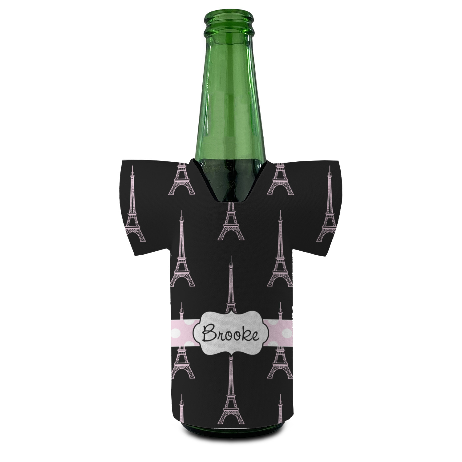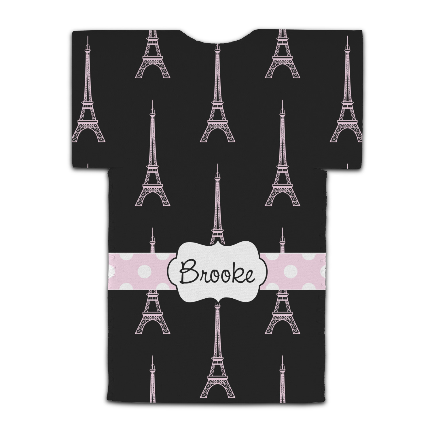 A gorgeous wide soft pink and white polka dot band adds a touch of French whimsy. The beautiful white label trimmed in coordinating pink highlights the personalization of your choice.