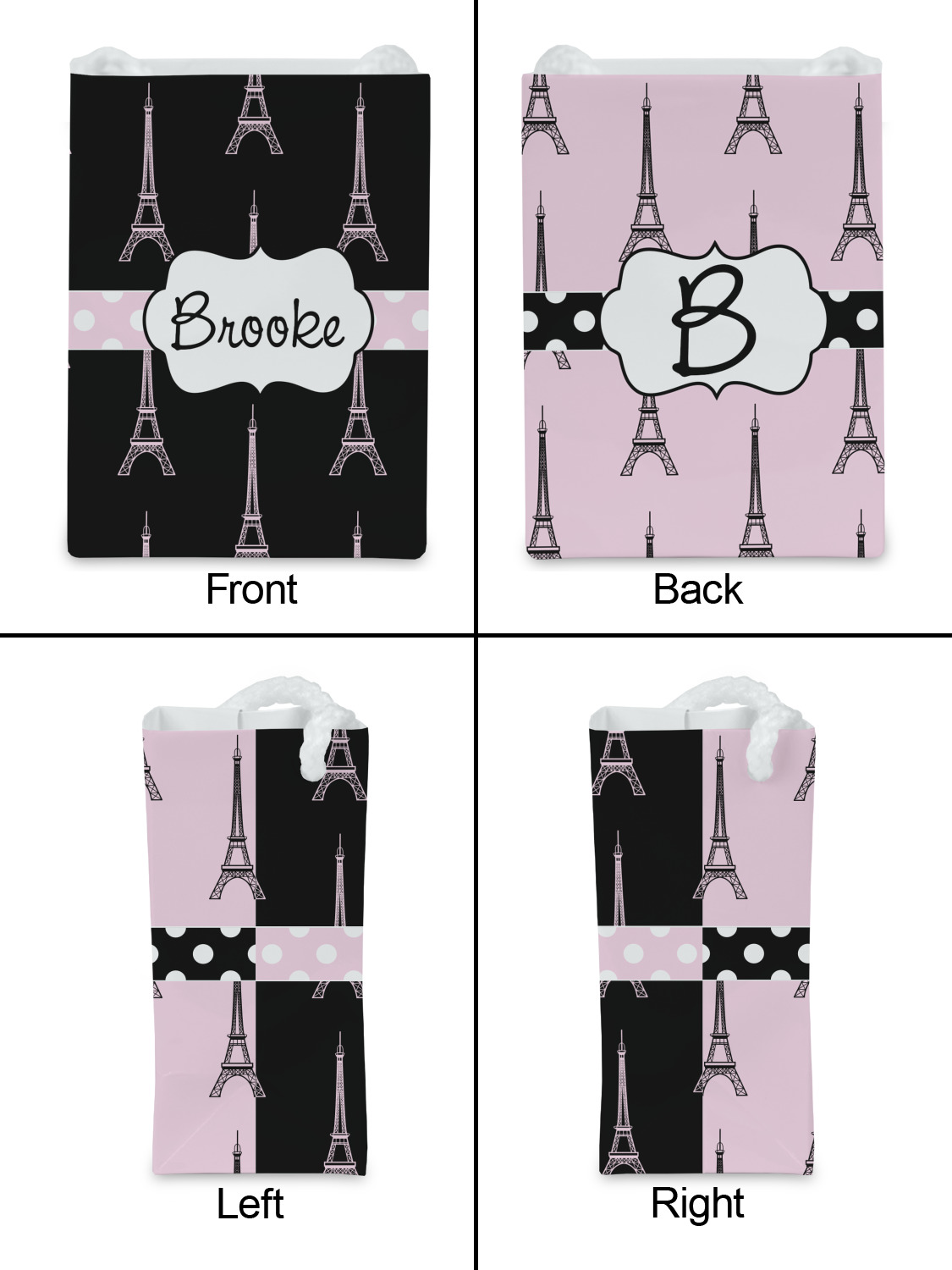 A gorgeous wide soft pink and white polka dot band adds a touch of French whimsy. The beautiful white label trimmed in coordinating pink highlights the personalization of your choice.