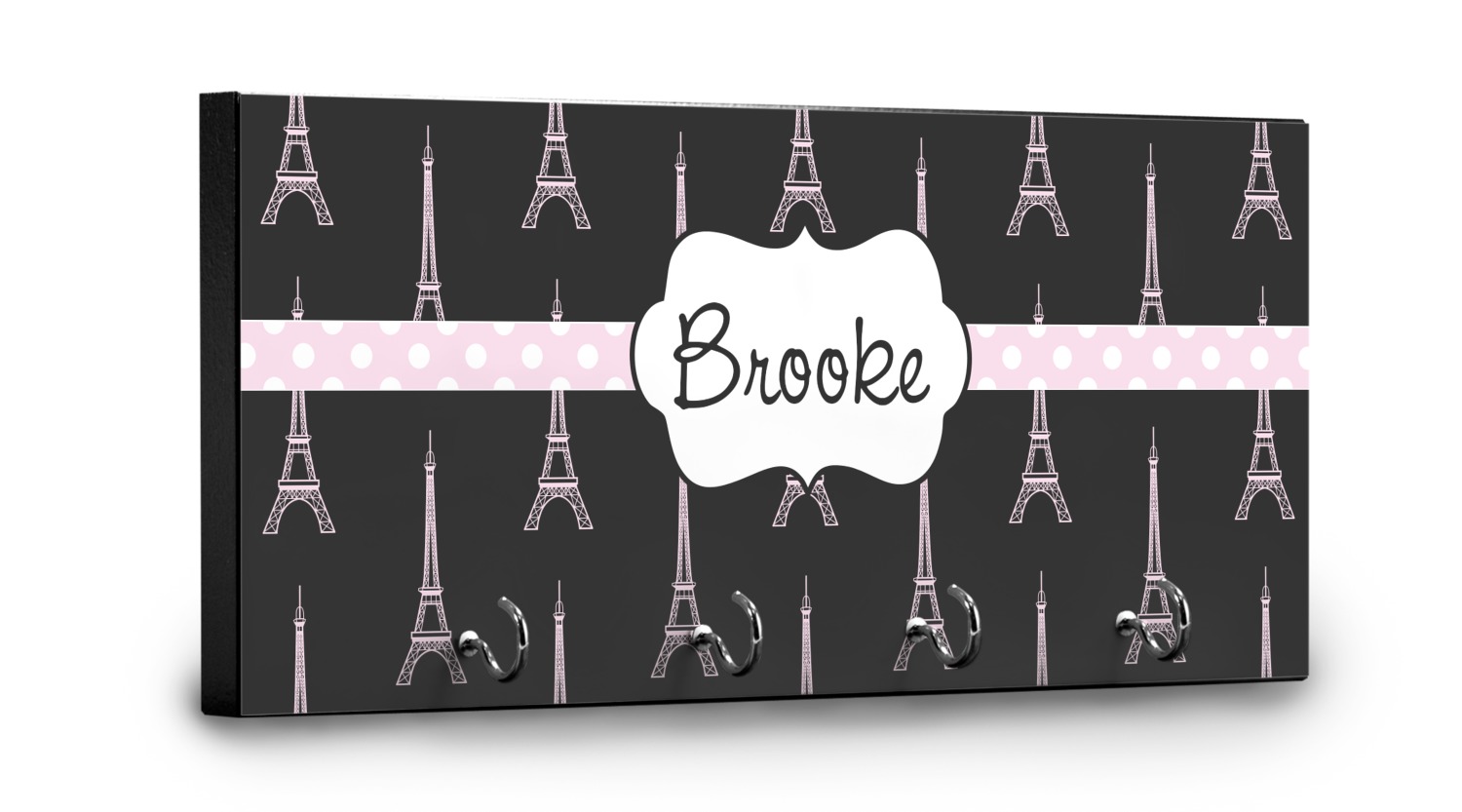 This 11" x 5" key hanger is made of sturdy wood and has four metal hooks lining the bottom. This is the perfect size for a family with several drivers. Not only can you hang keys on it though, but pet leashes and other small items. The board is black on the sides and back and is printed with the design of your choice on the front.